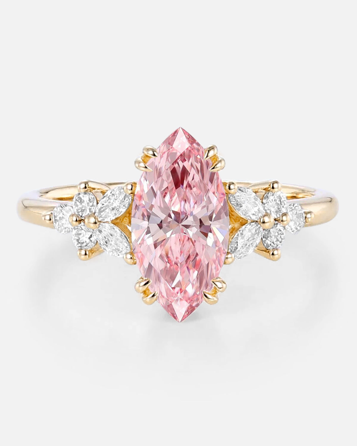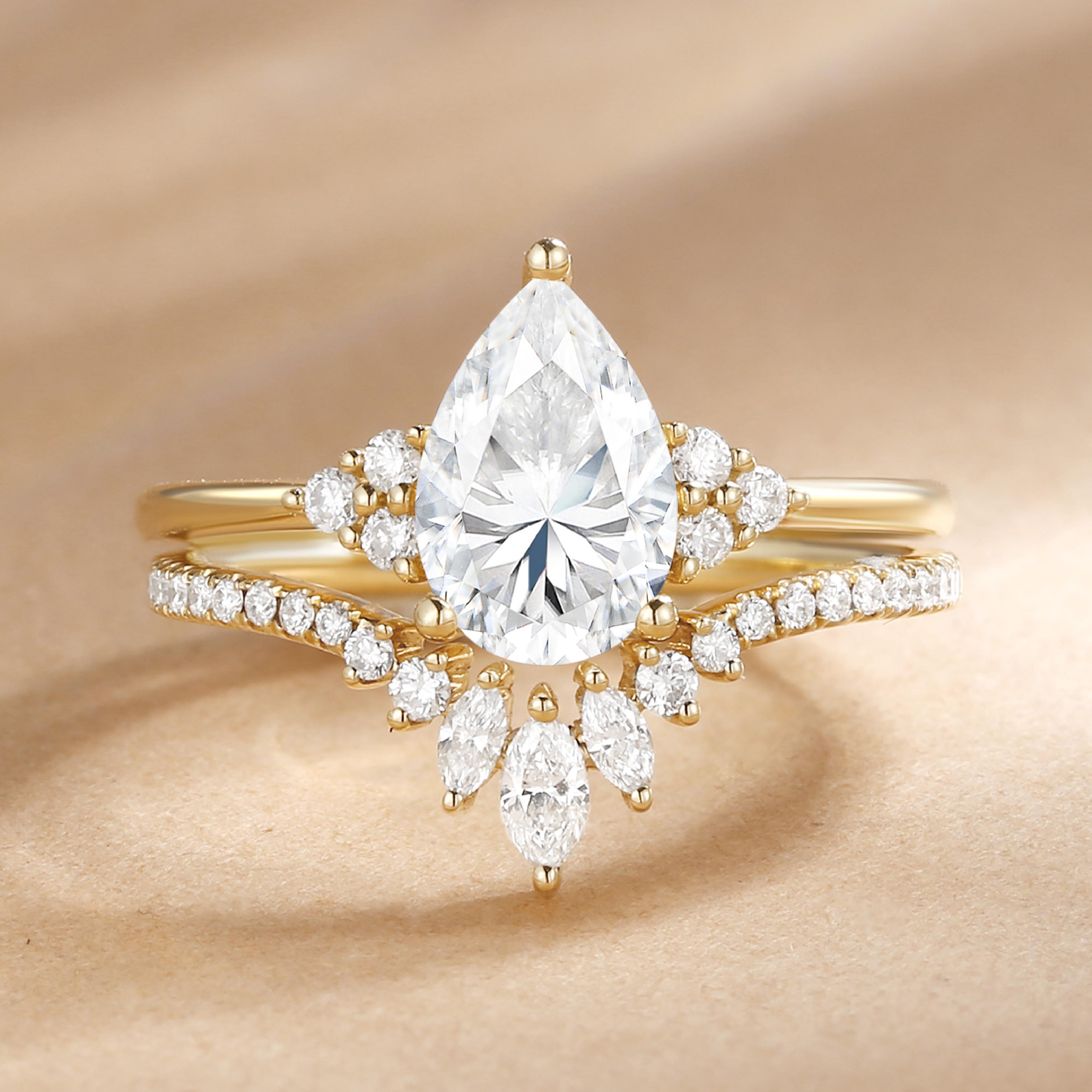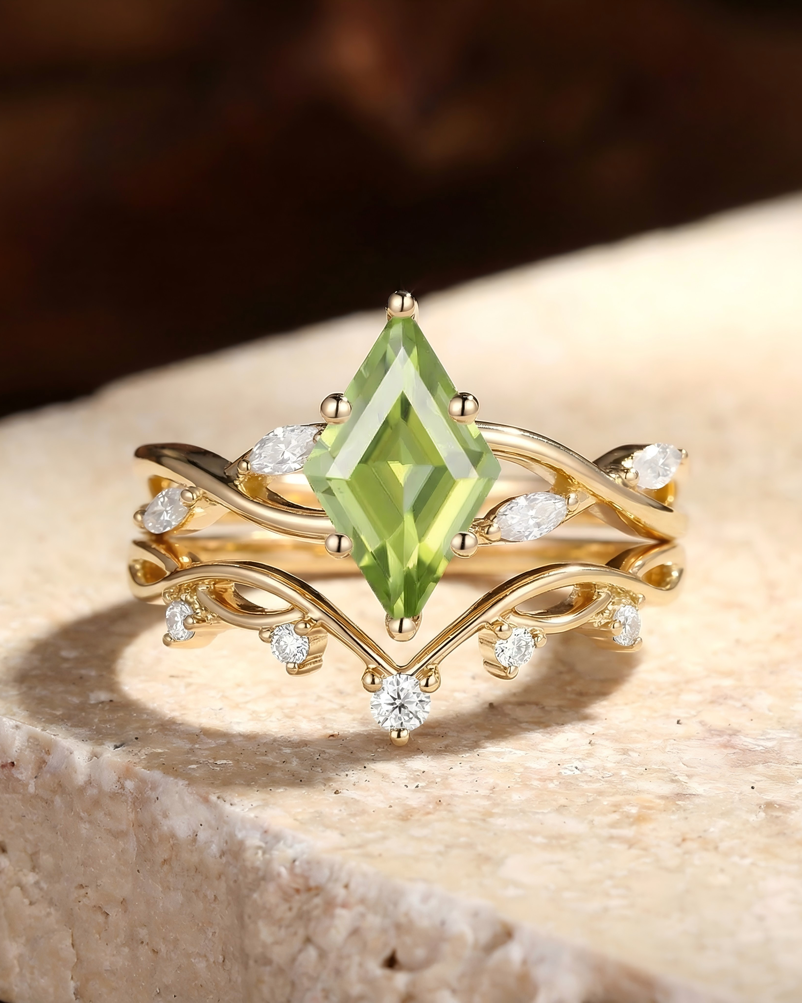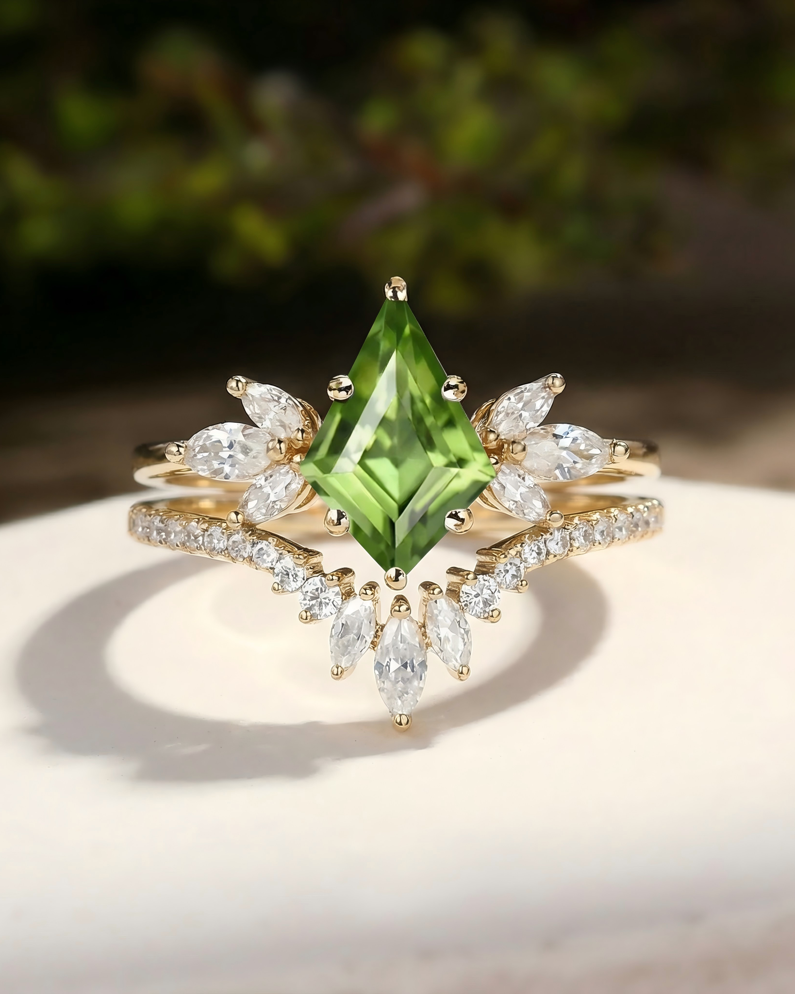 Kite Cut Lab Grown Diamond Engagement Ring with Straight Band Set 2pcs - Esther