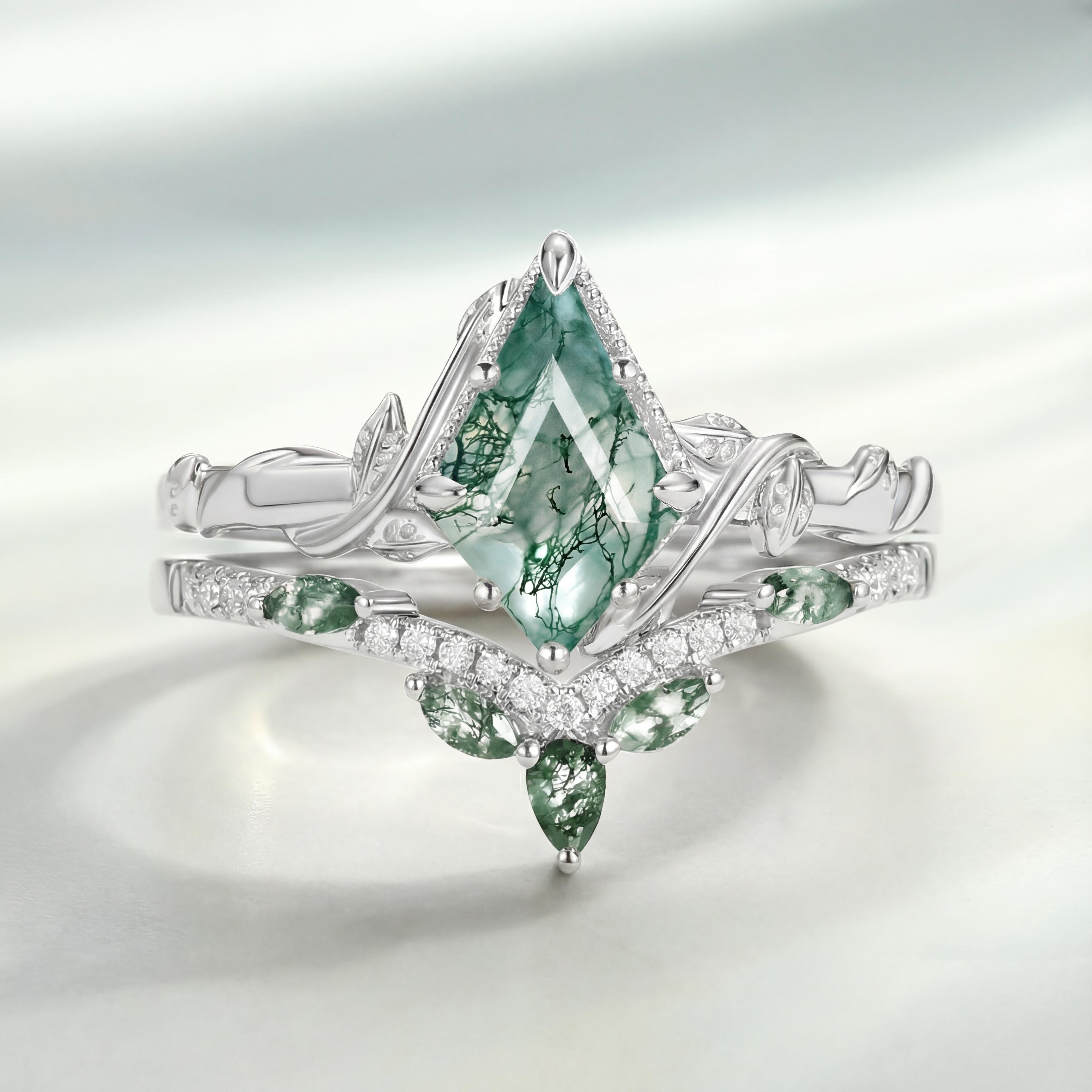Obsessed with this ring set! The moss agate stones are even prettier in person. Perfectly sized (got my usual 6) and so comfortable for daily wear. The leafy details are delicate but sturdy. Very fast shipping, and boxing is beautiful.