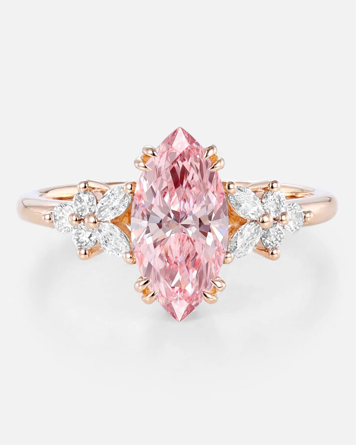 Vintage Engraved Marquise Lab Grown Diamond Engagement Ring Sets 2pcs - Eclat