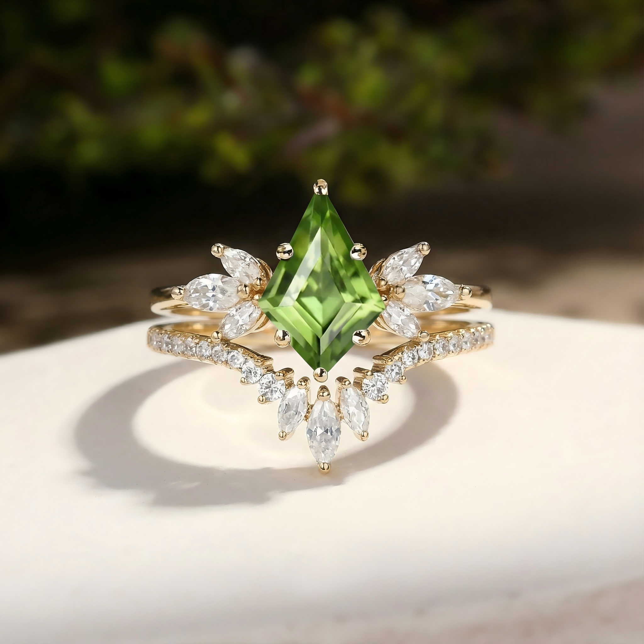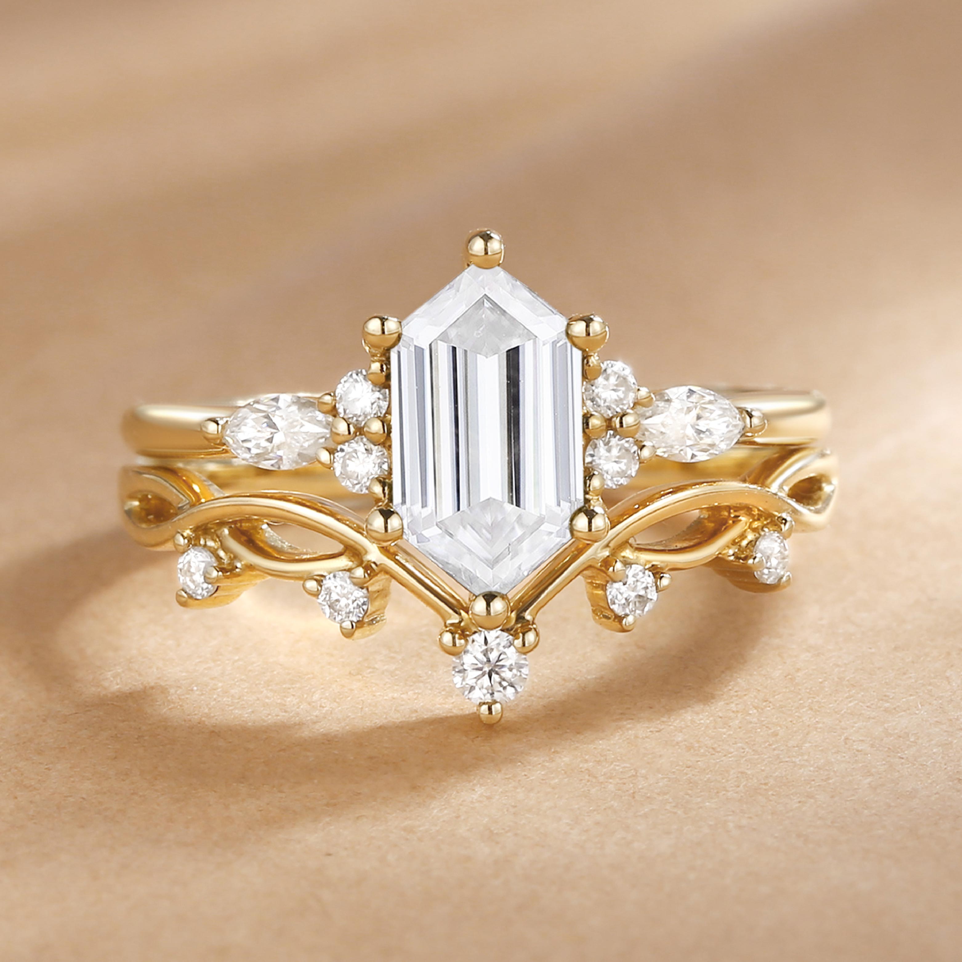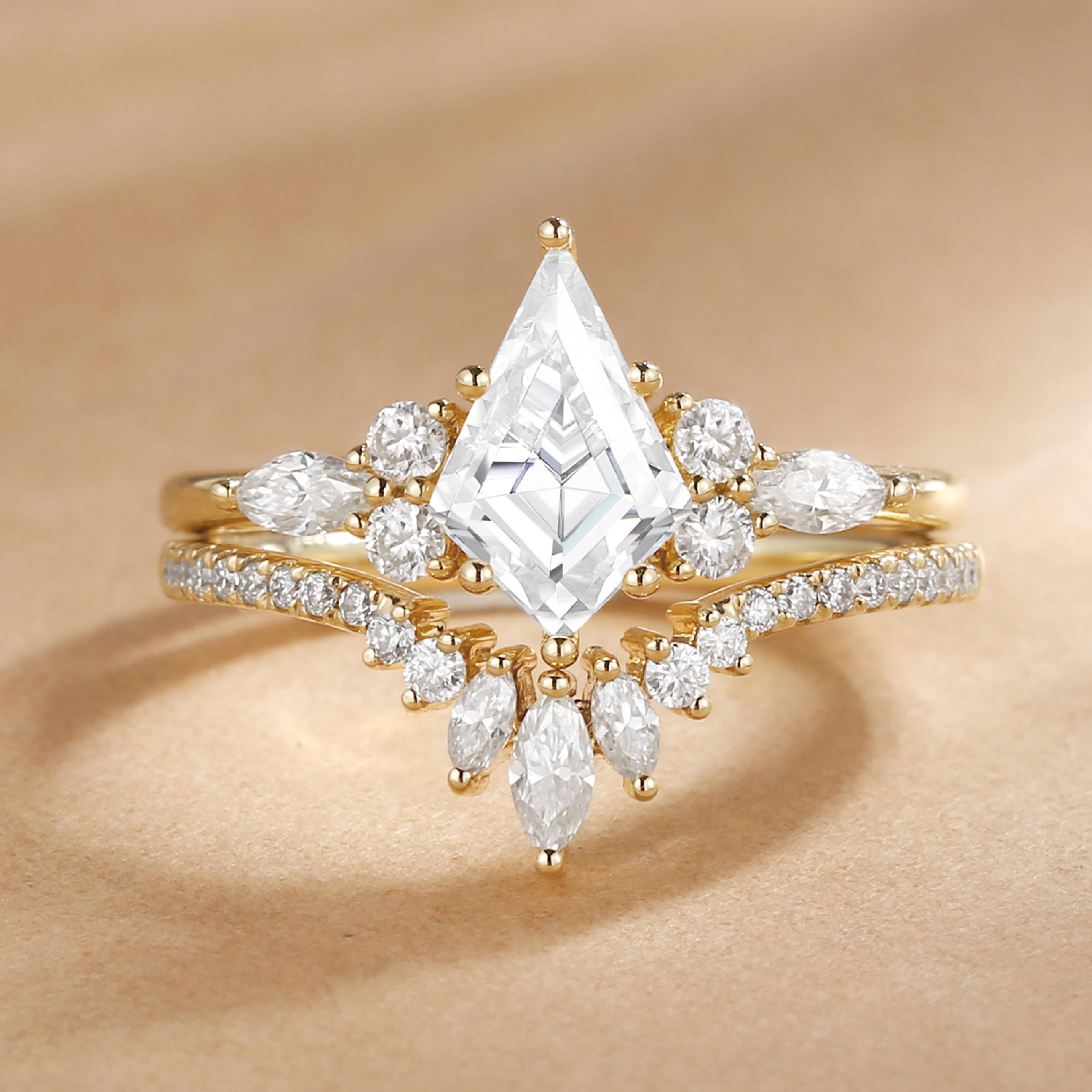 Kite Cut Lab Grown Diamond Engagement Ring with Straight Band Set 2pcs - Esther