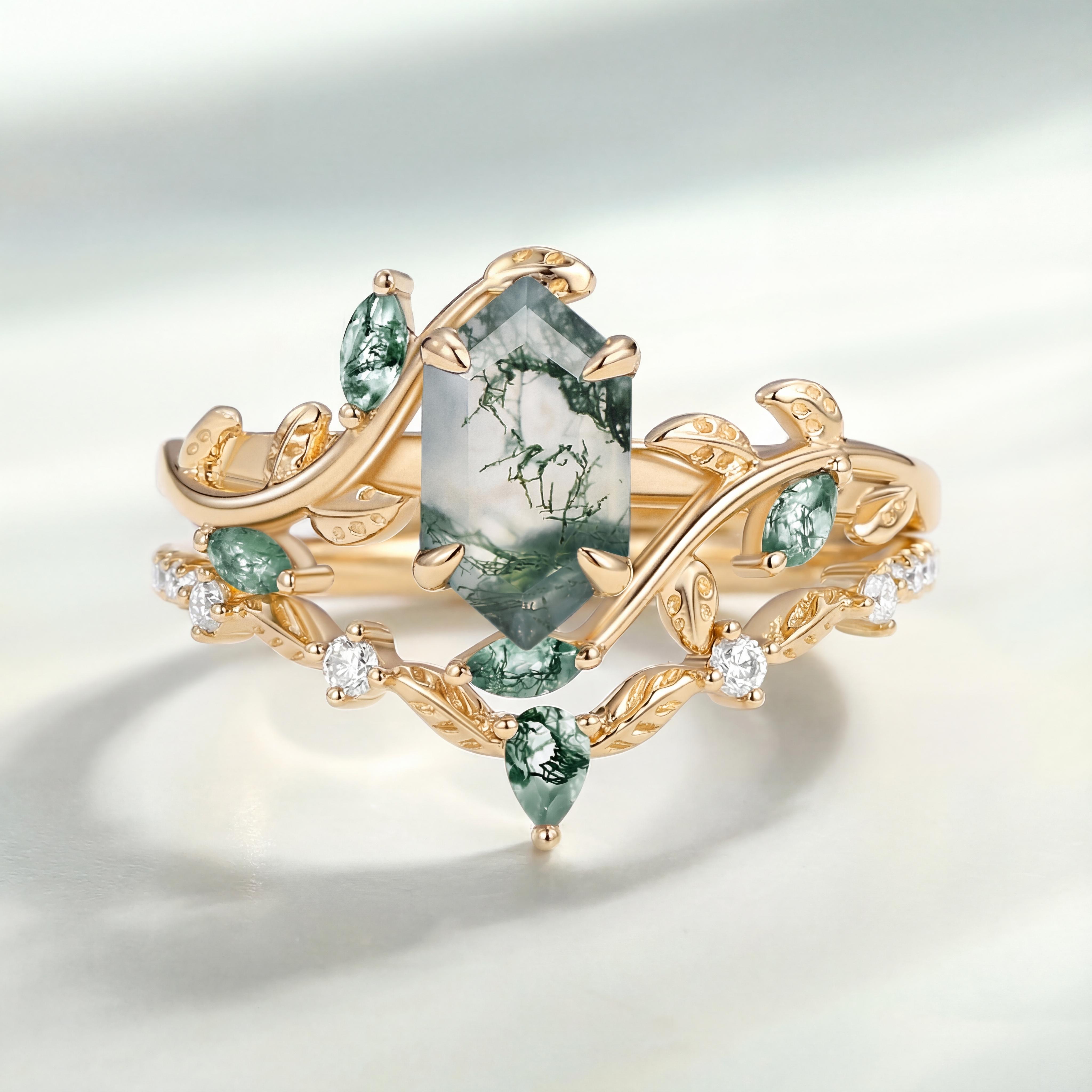 Obsessed with this ring set! The moss agate stones are even prettier in person. Perfectly sized (got my usual 6) and so comfortable for daily wear. The leafy details are delicate but sturdy. Very fast shipping, and boxing is beautiful.