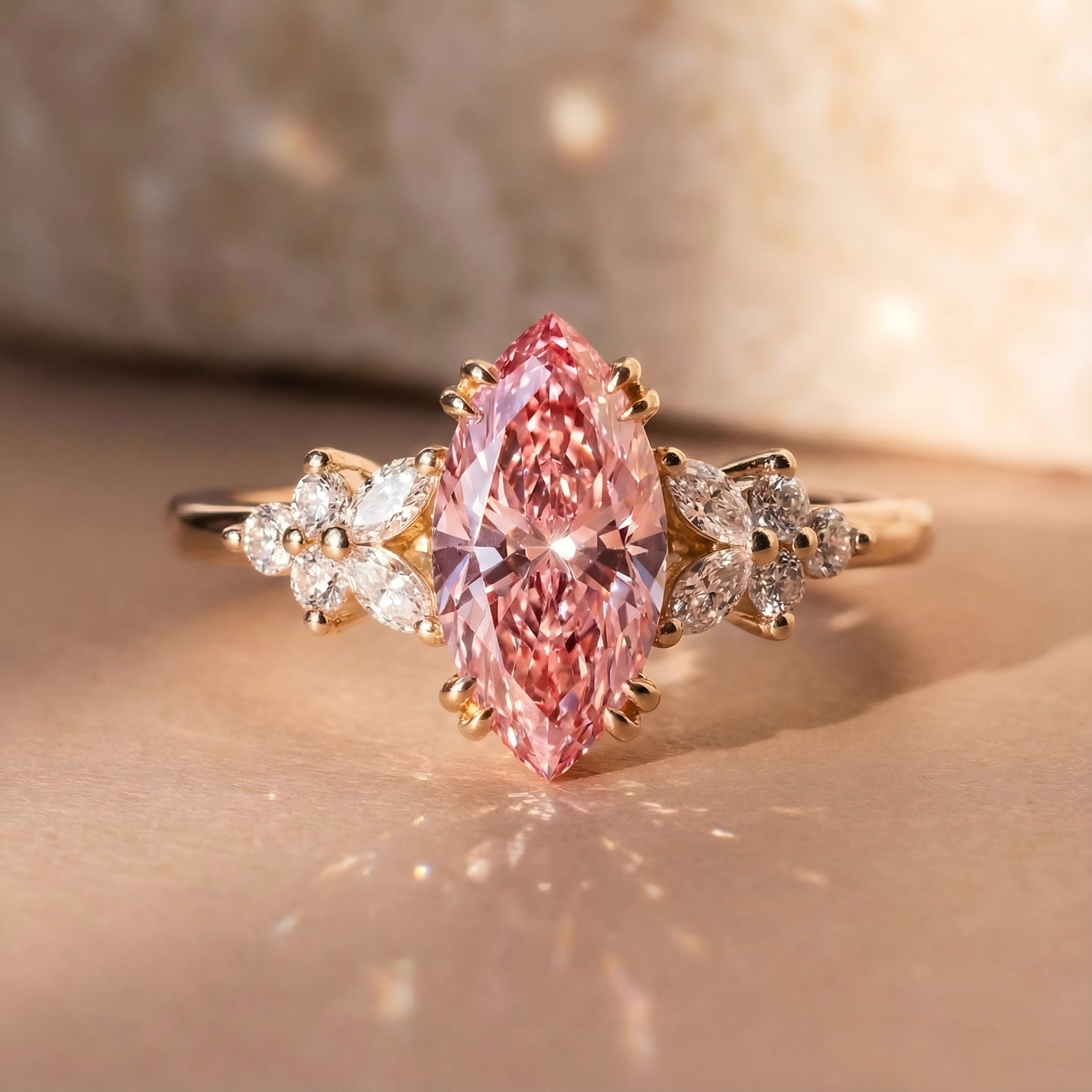 Vintage Engraved Marquise Lab Grown Diamond Engagement Ring Sets 2pcs - Eclat
