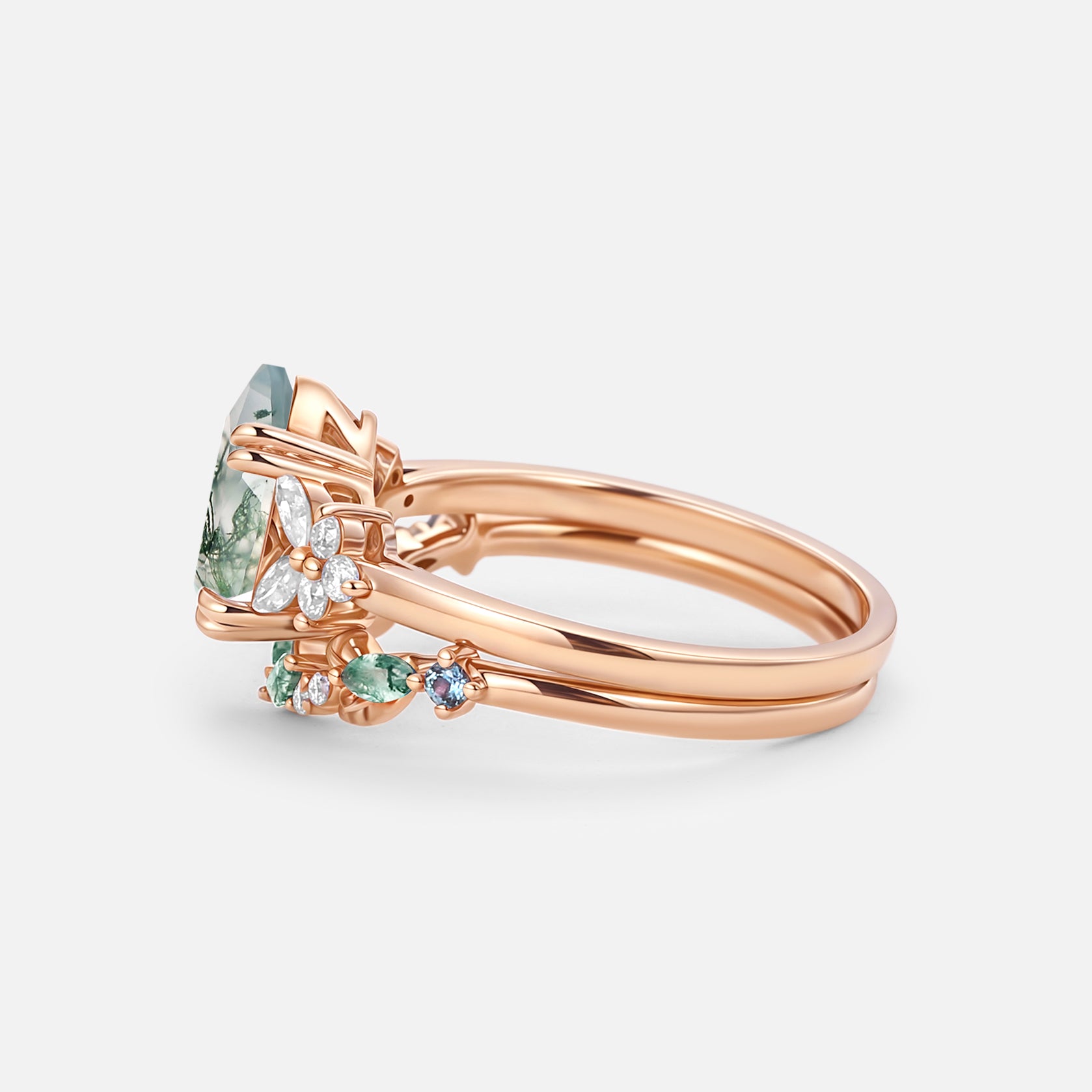 My fiancé proposed with this stunning ring on a romantic WV getaway in the mountains and it is absolutely GORGEOUS. Photos do not do it justice. The clarity of the moss agate stone is perfect and I love the accent of the stone that he customized and added to the wedding band! I love this ring so much! Thank you for creating such unique pieces for girls like me that prefer the non- traditional route!