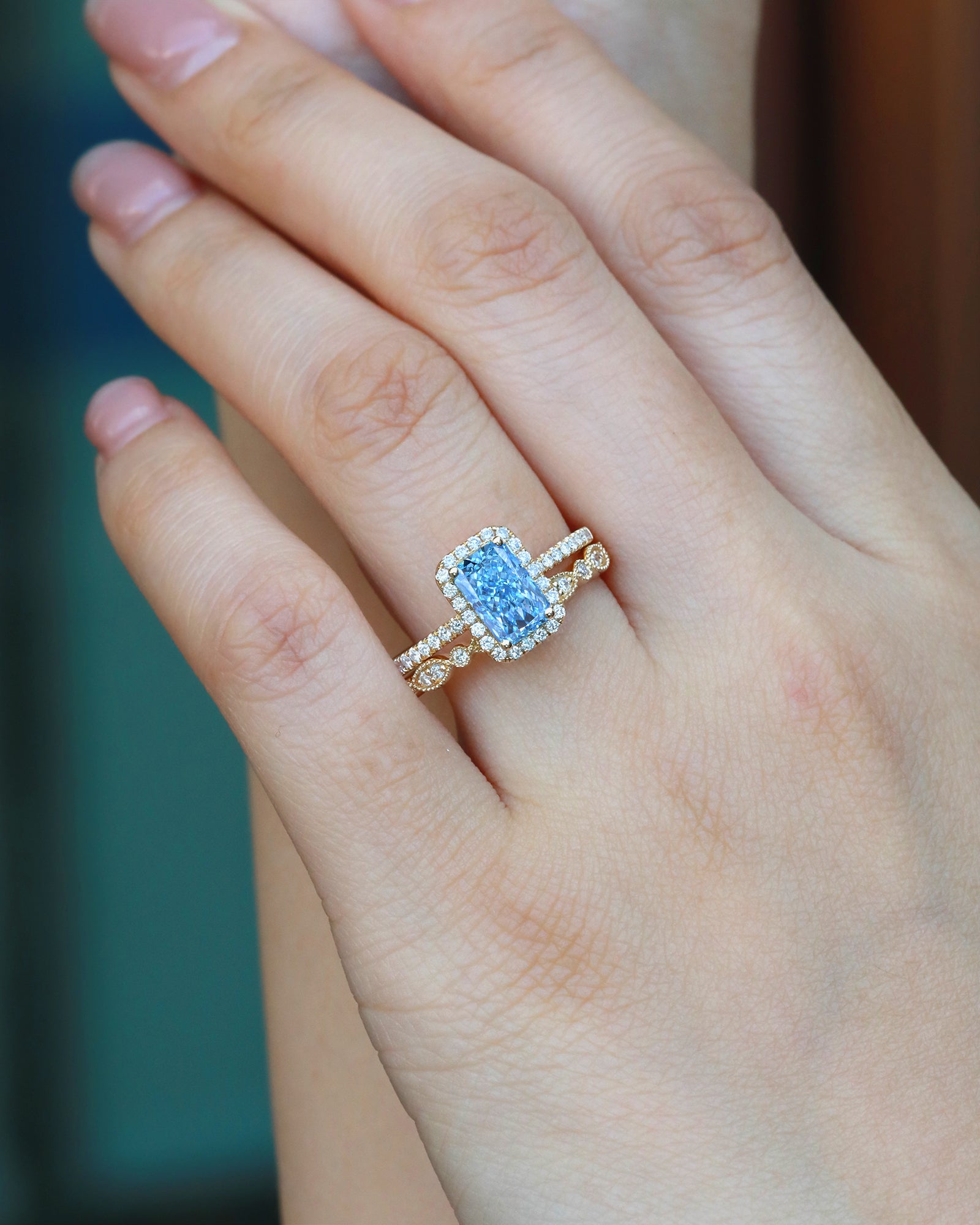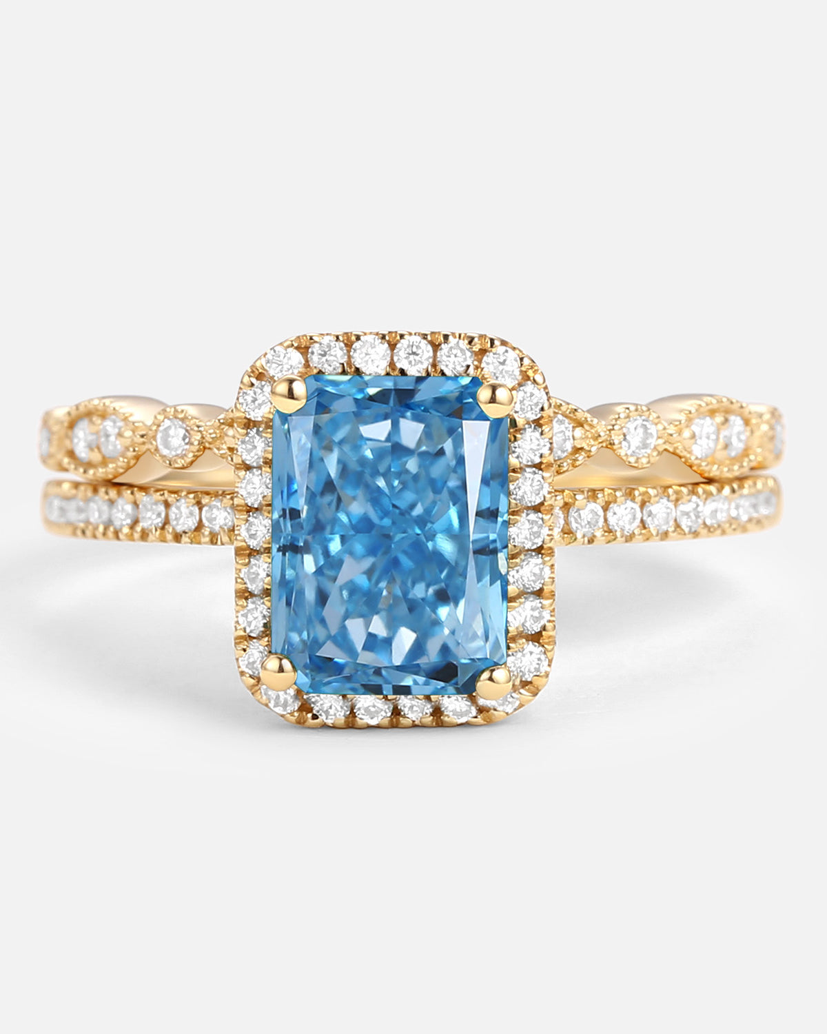 1.0ct Radiant Cut Blue Lab Grown Diamond Cluster Engagement Ring Set - Jenna