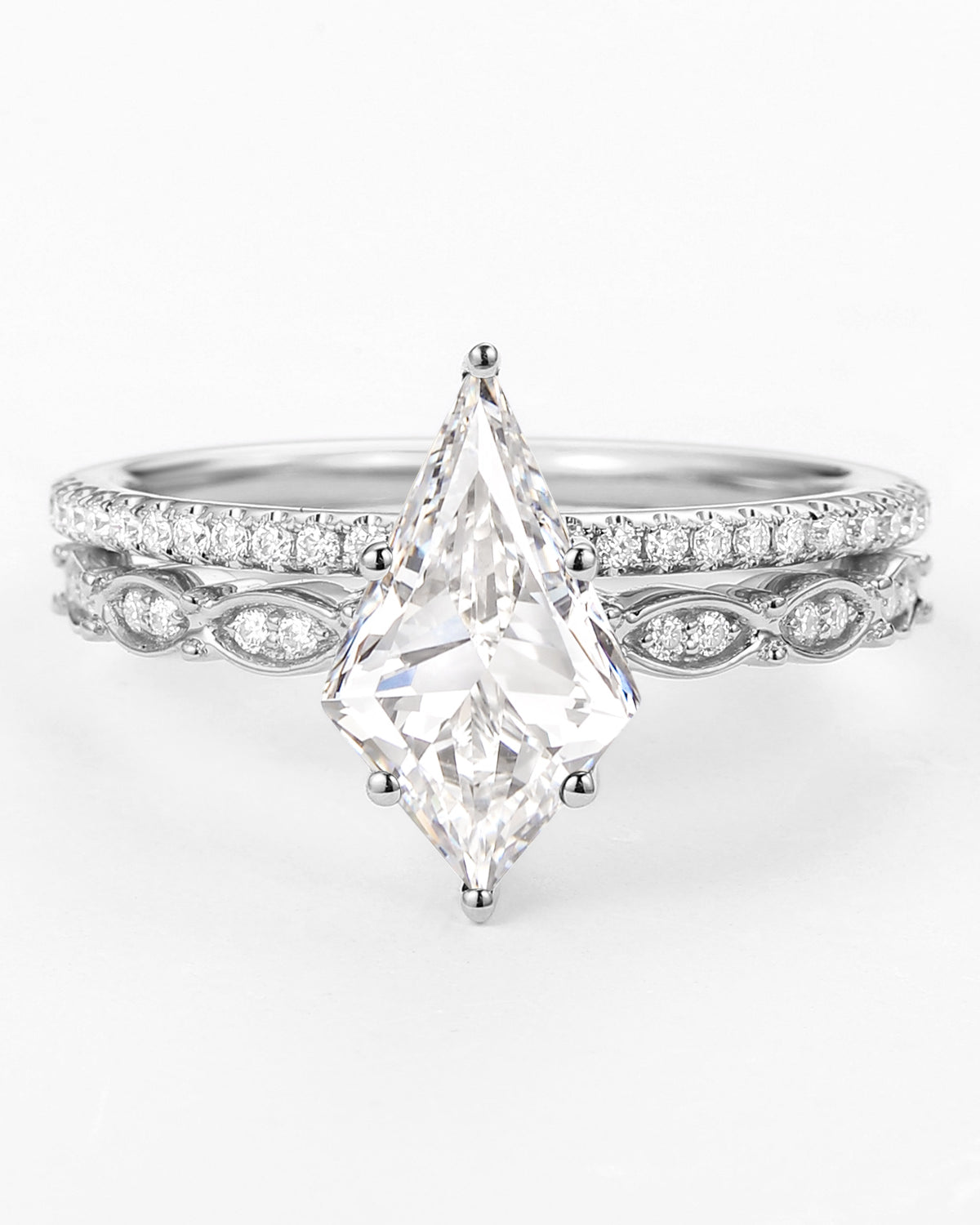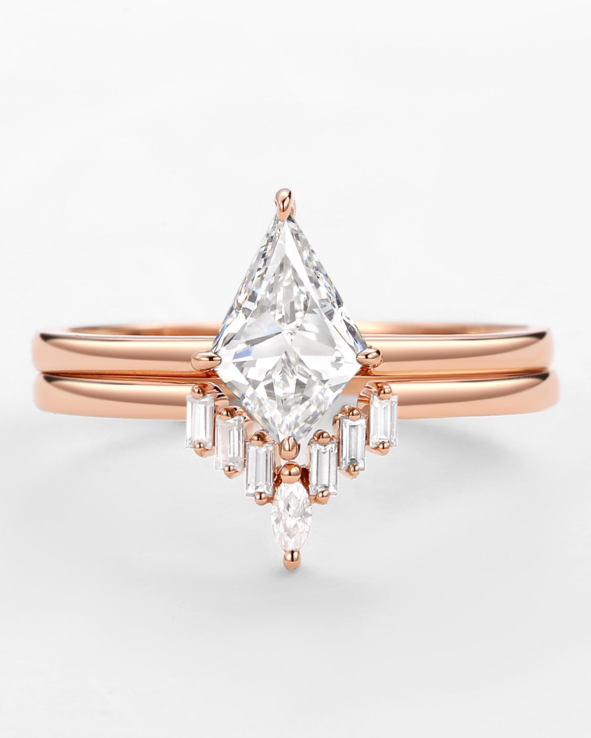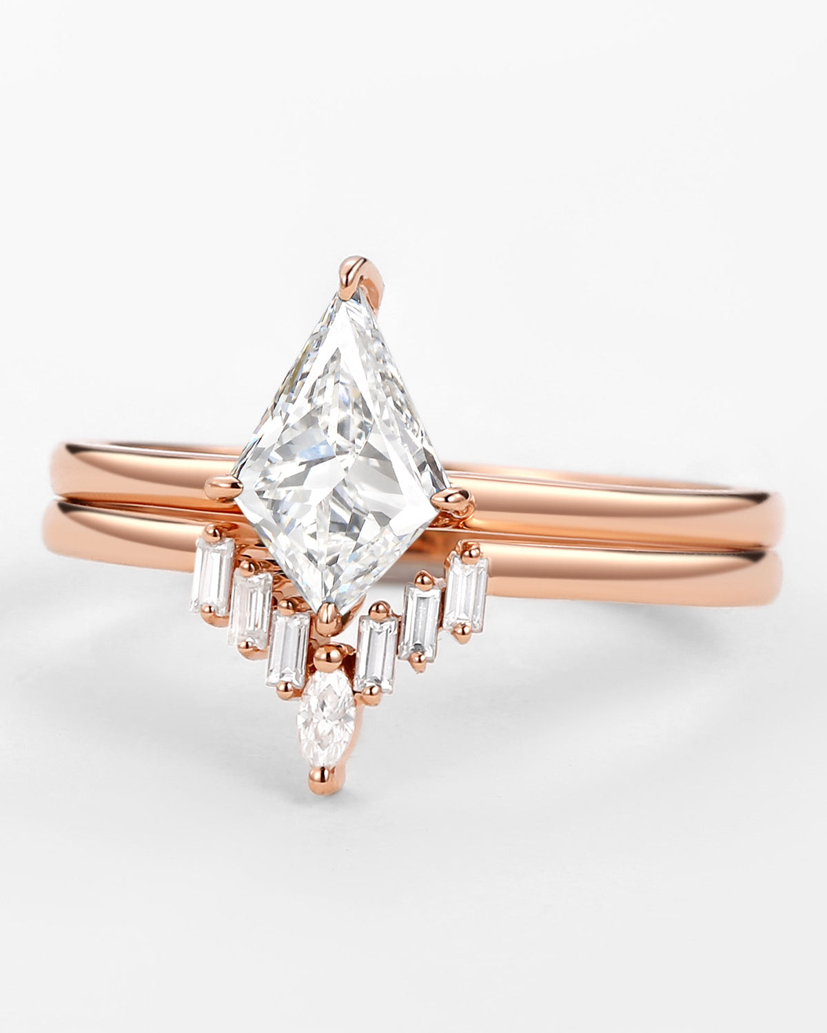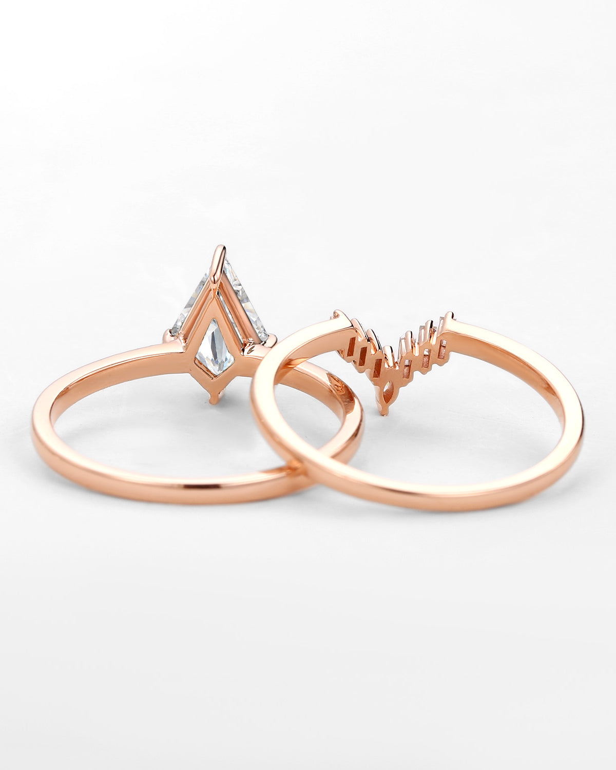 Kite Cut Lab Grown Diamond Engagement Ring with Straight Band Set 2pcs - Esther