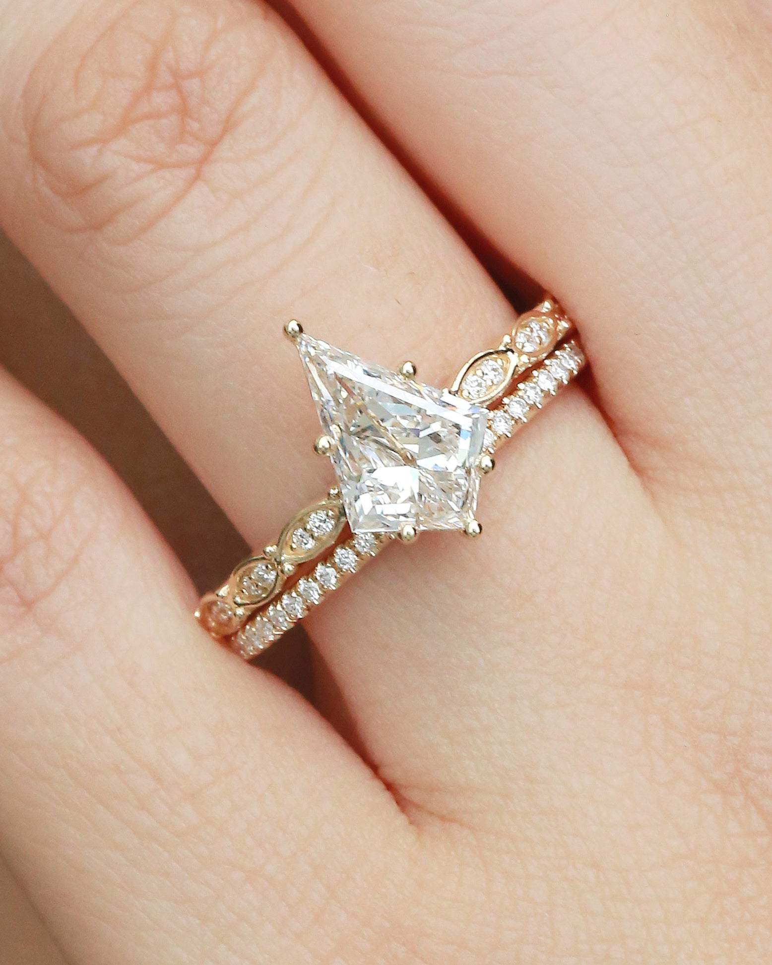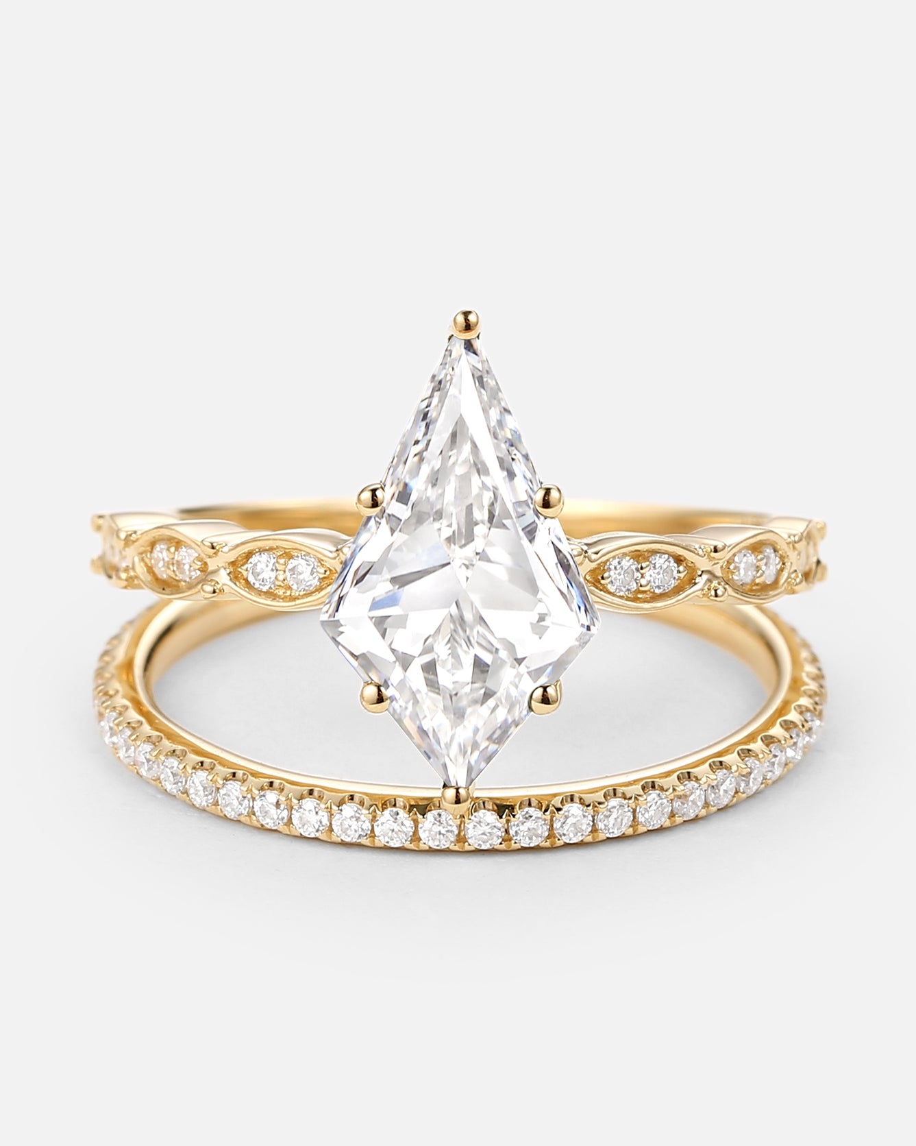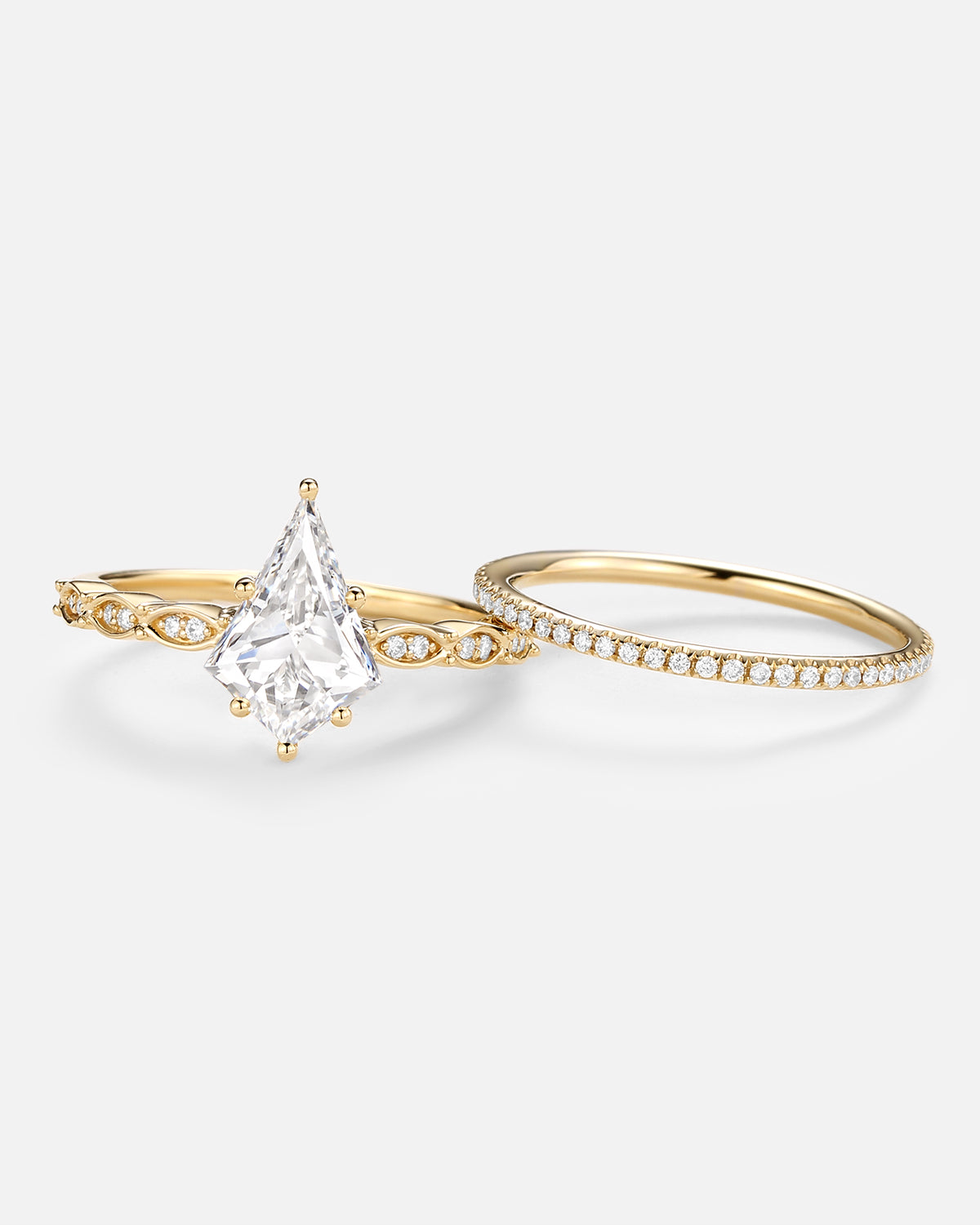 Kite Cut Lab Grown Diamond Engagement Ring with Straight Band Set 2pcs - Esther