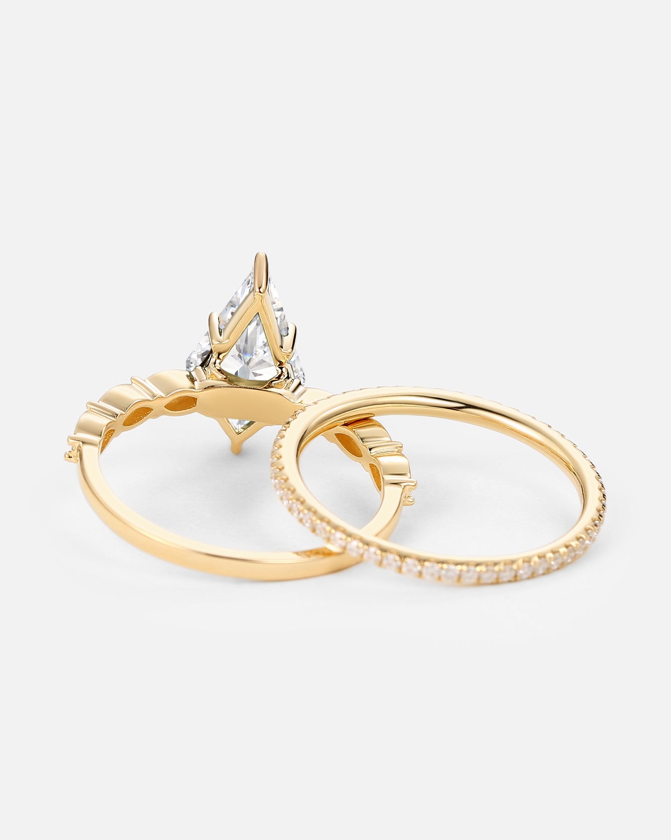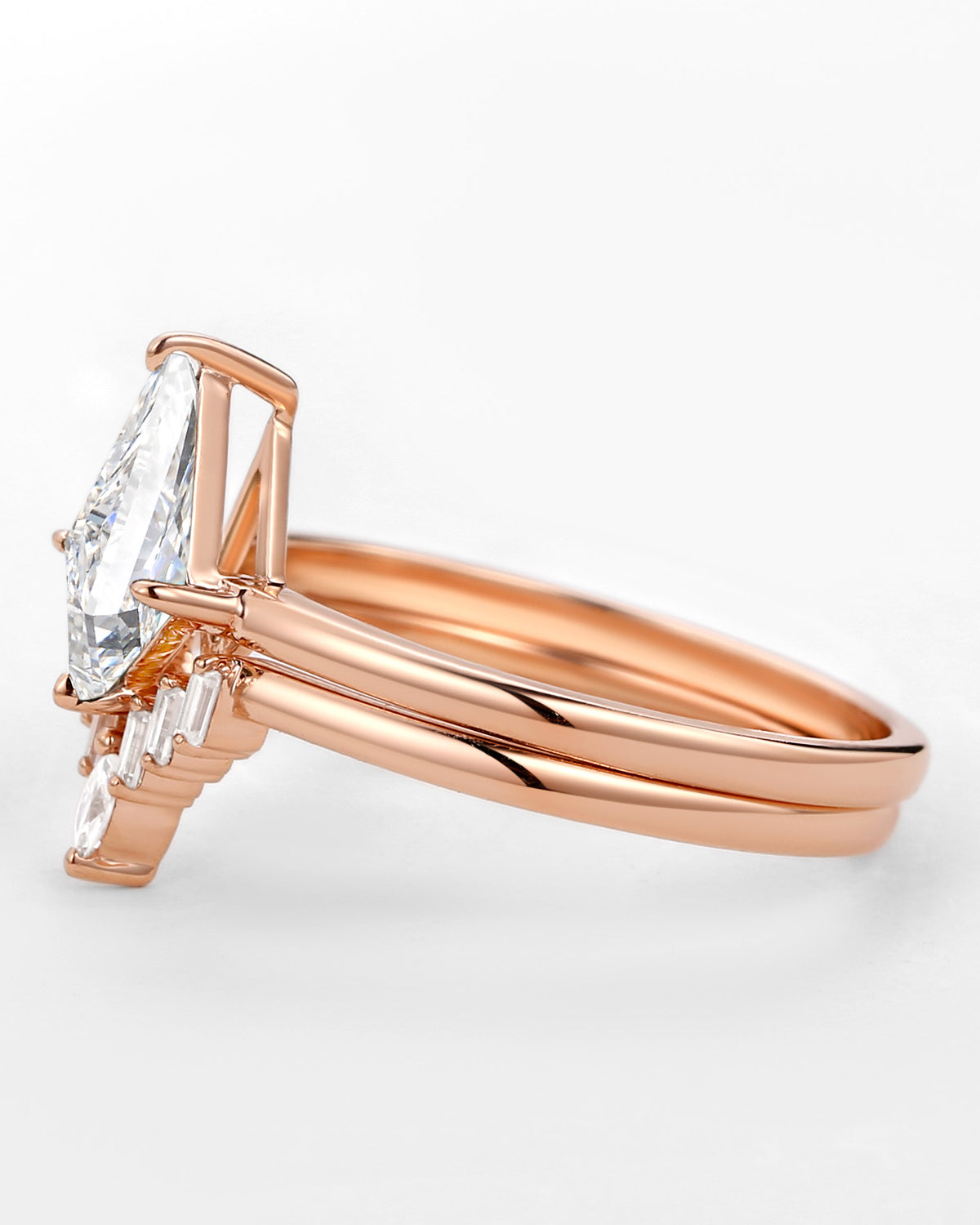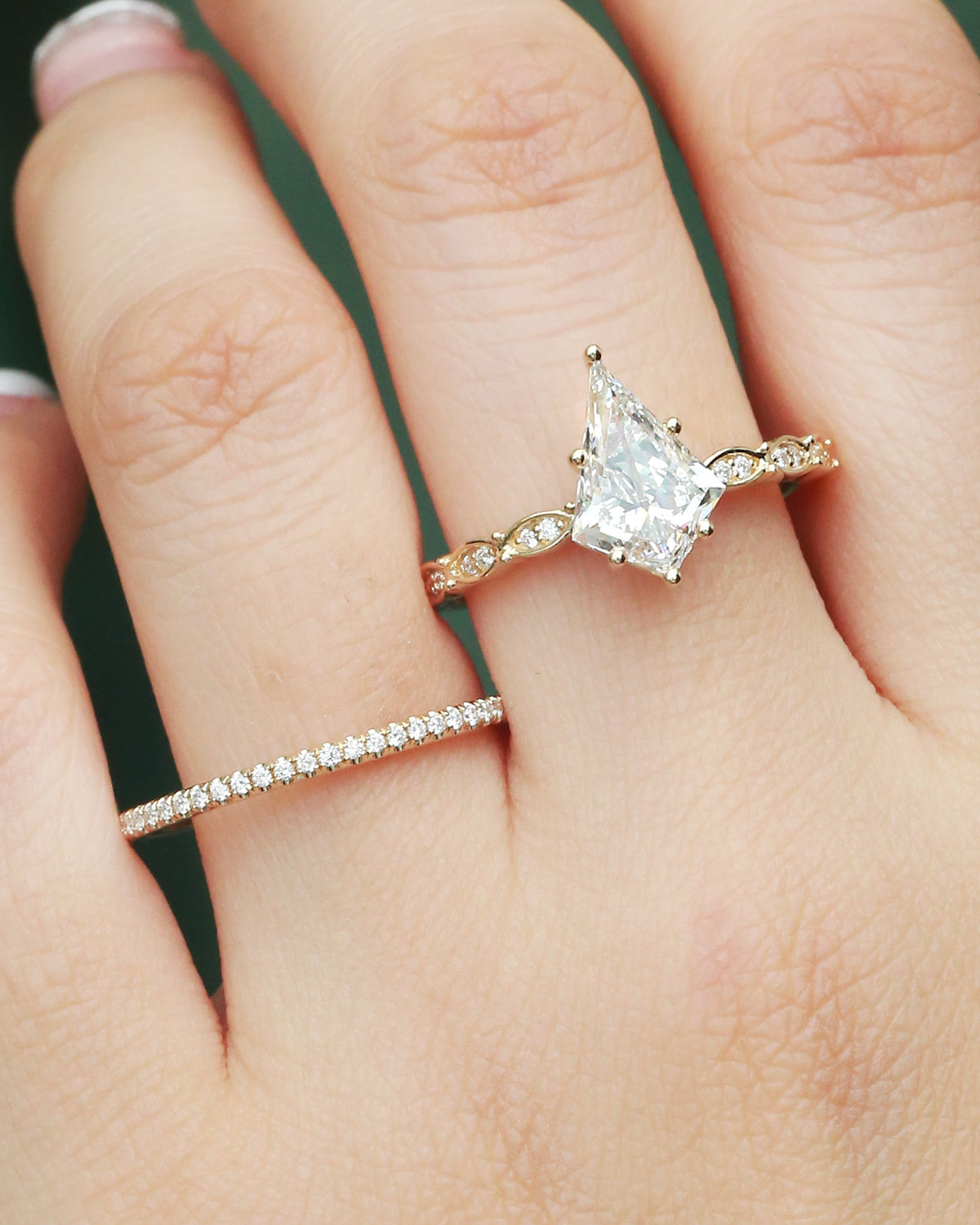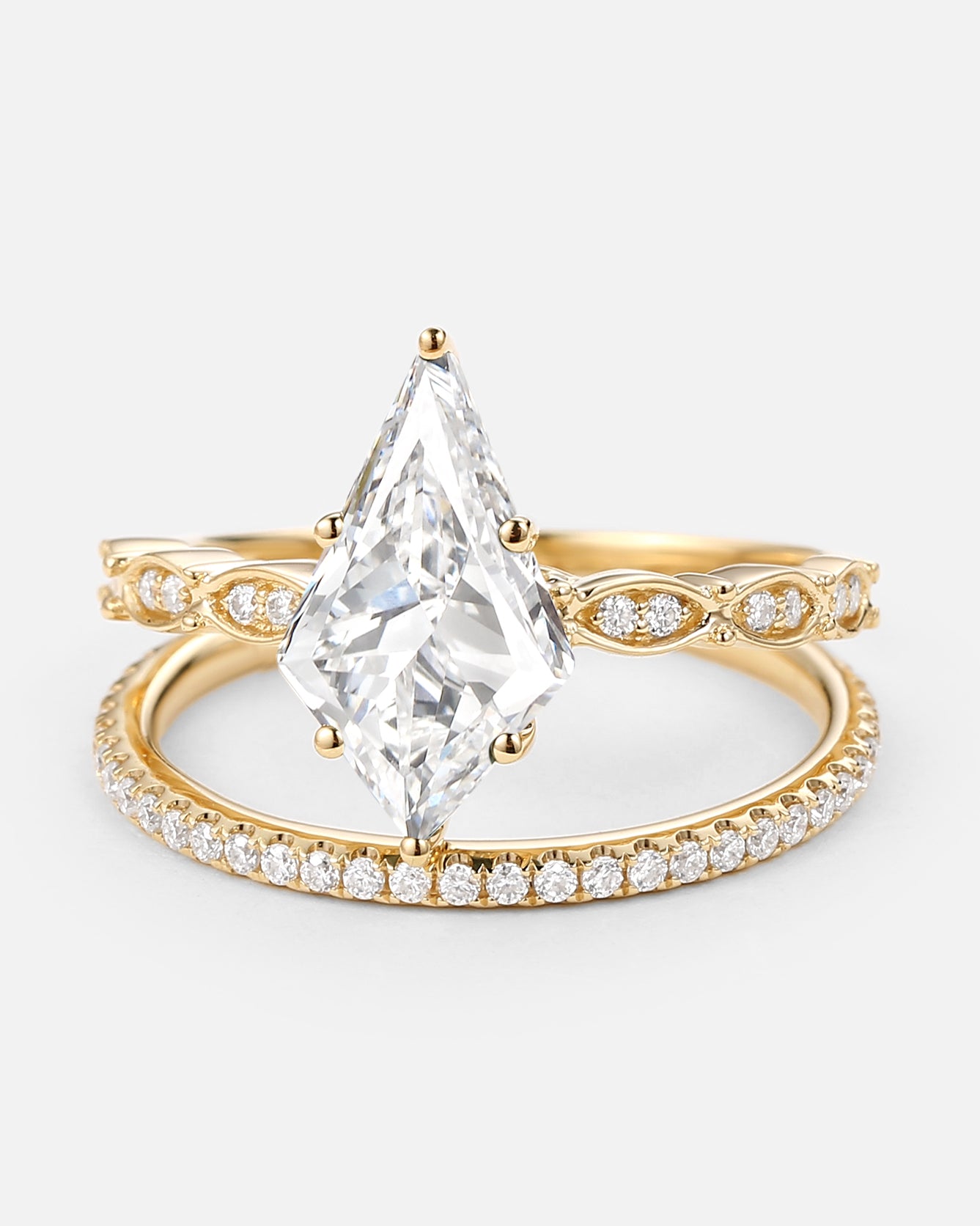 Kite Cut Lab Grown Diamond Engagement Ring with Straight Band Set 2pcs - Esther