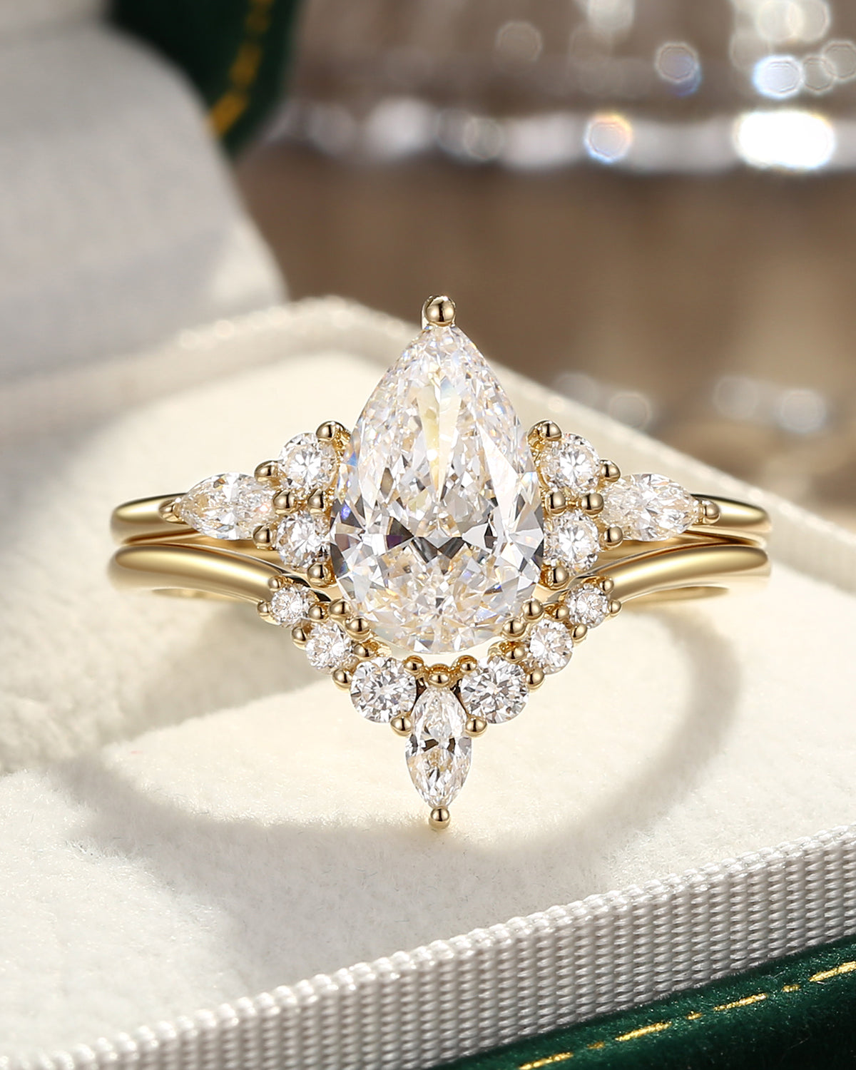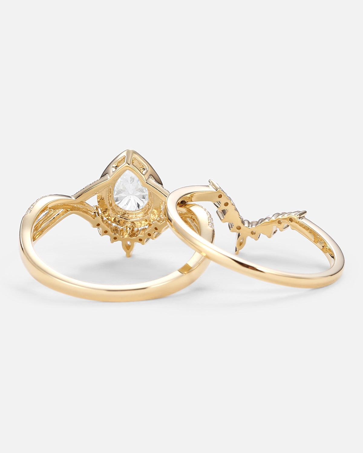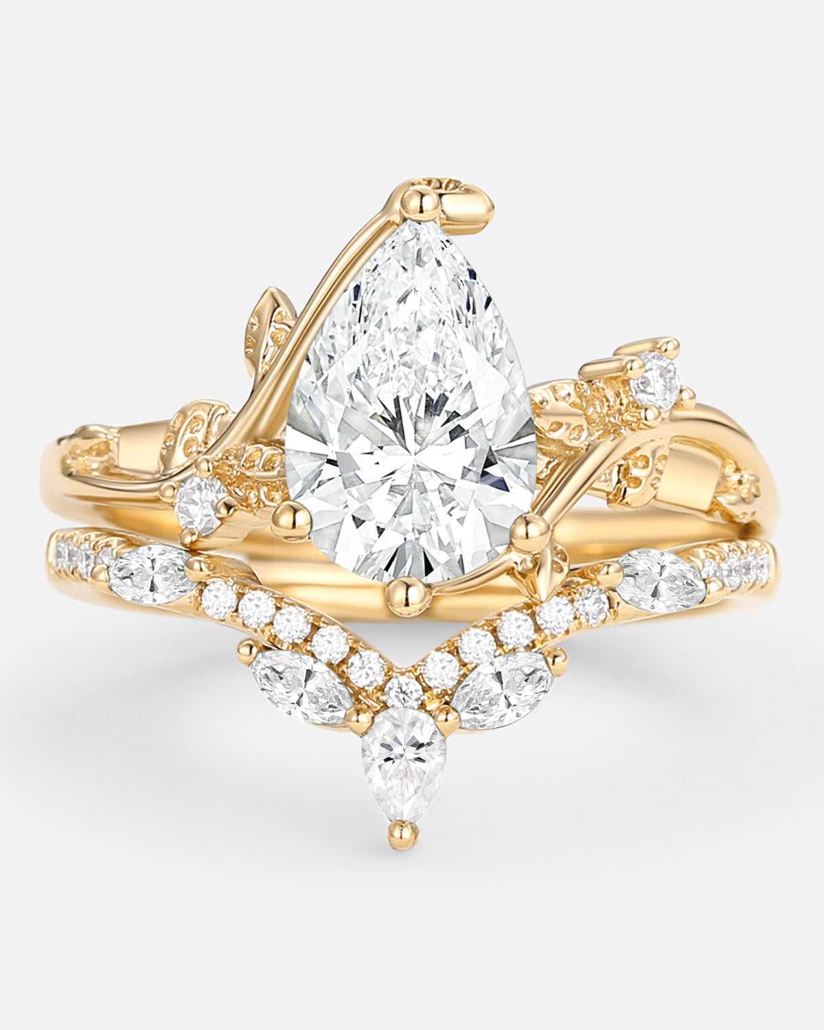 Pear Cut Lab Grown Diamond Leafy Ring Set 2pcs - Twigs