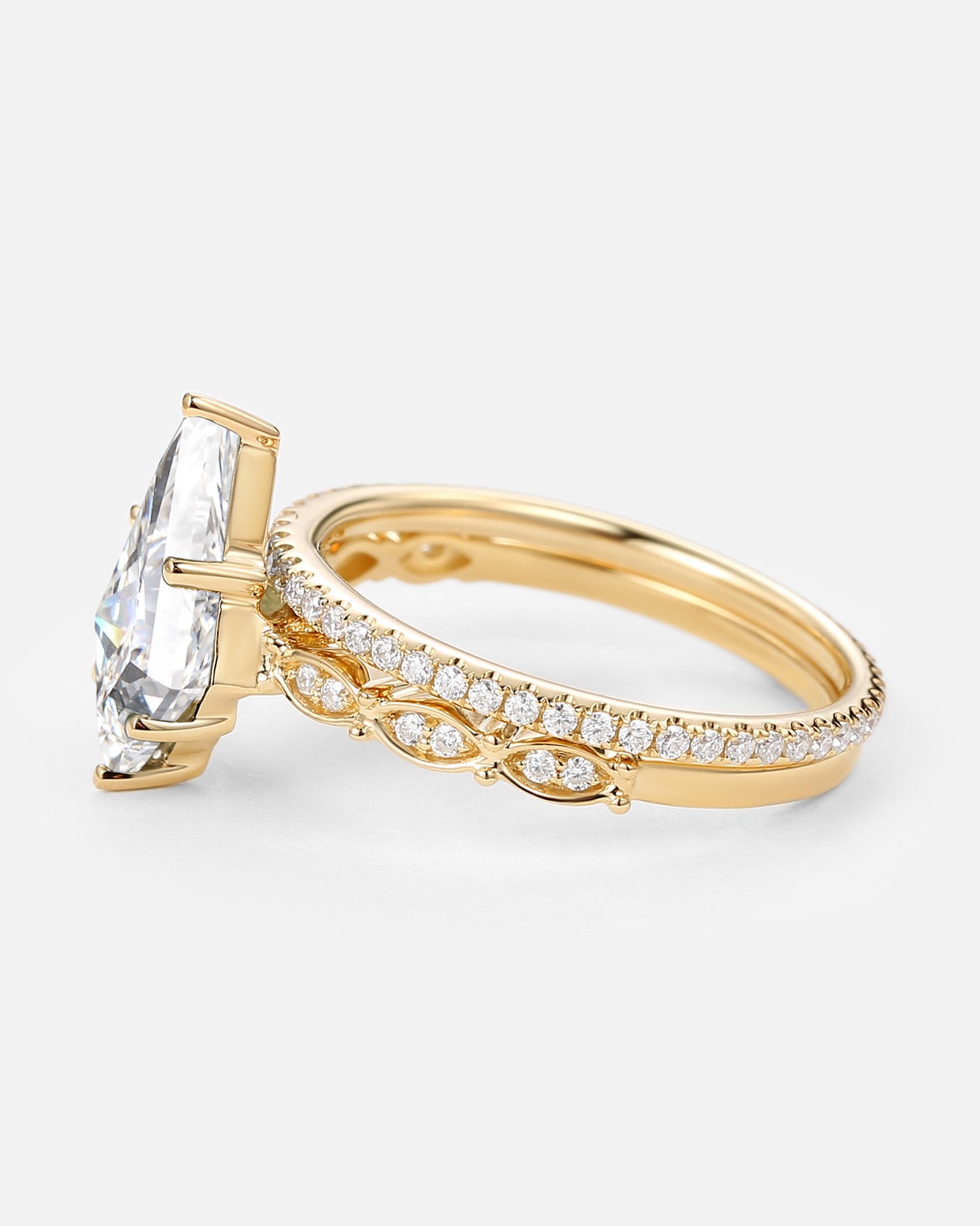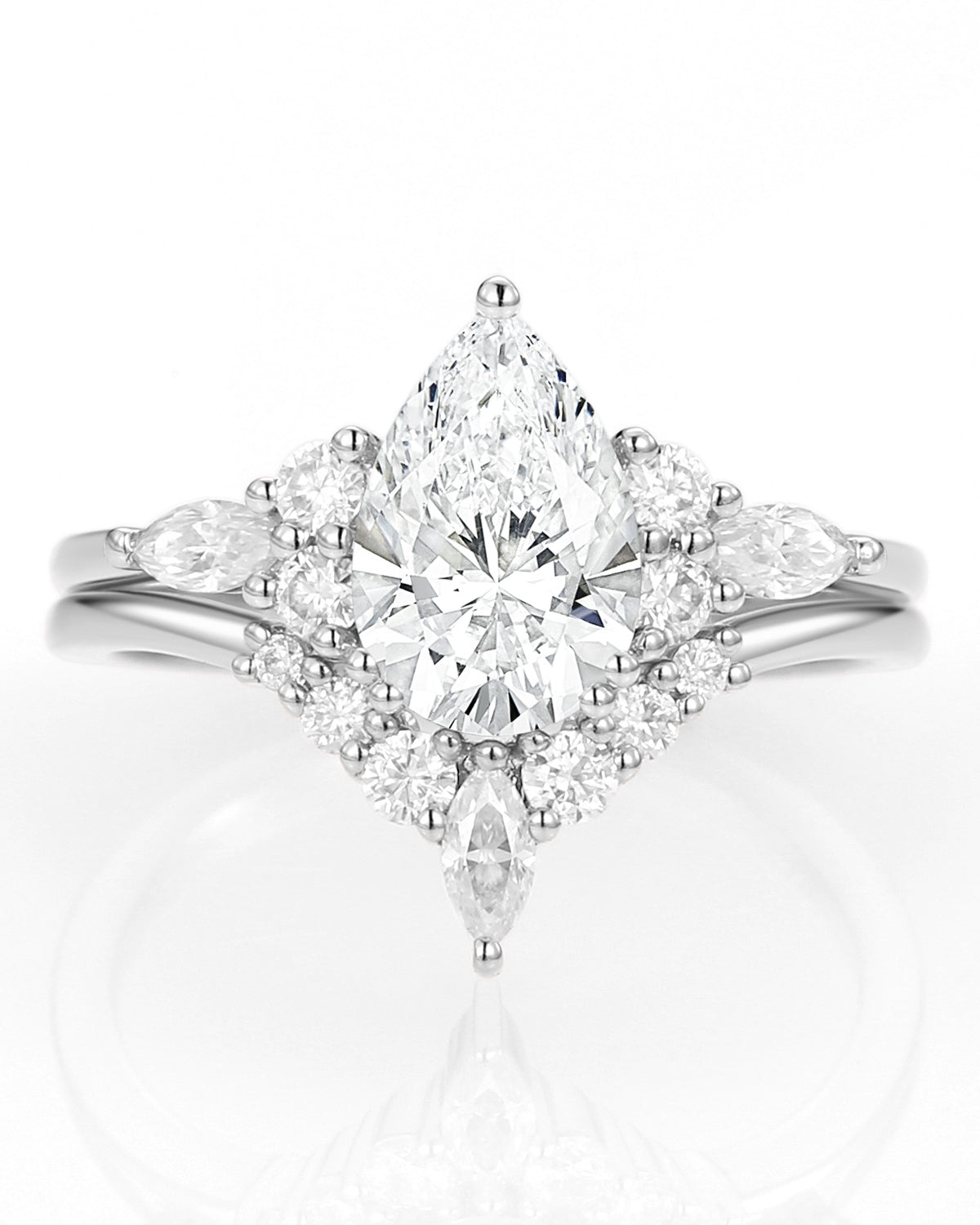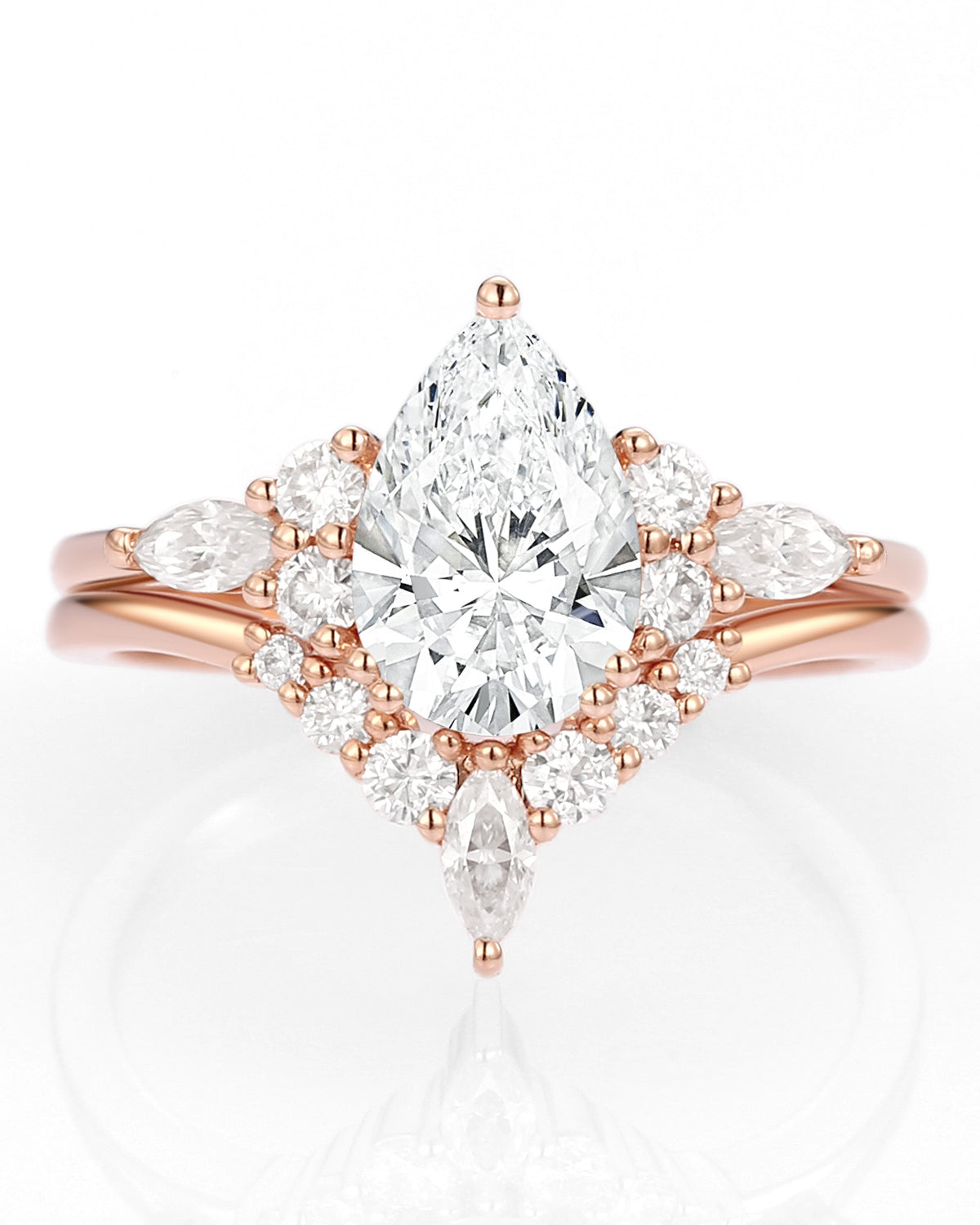 1.0ct Pear Lab Grown Diamond Leafy Ring Set 2pcs - Ona