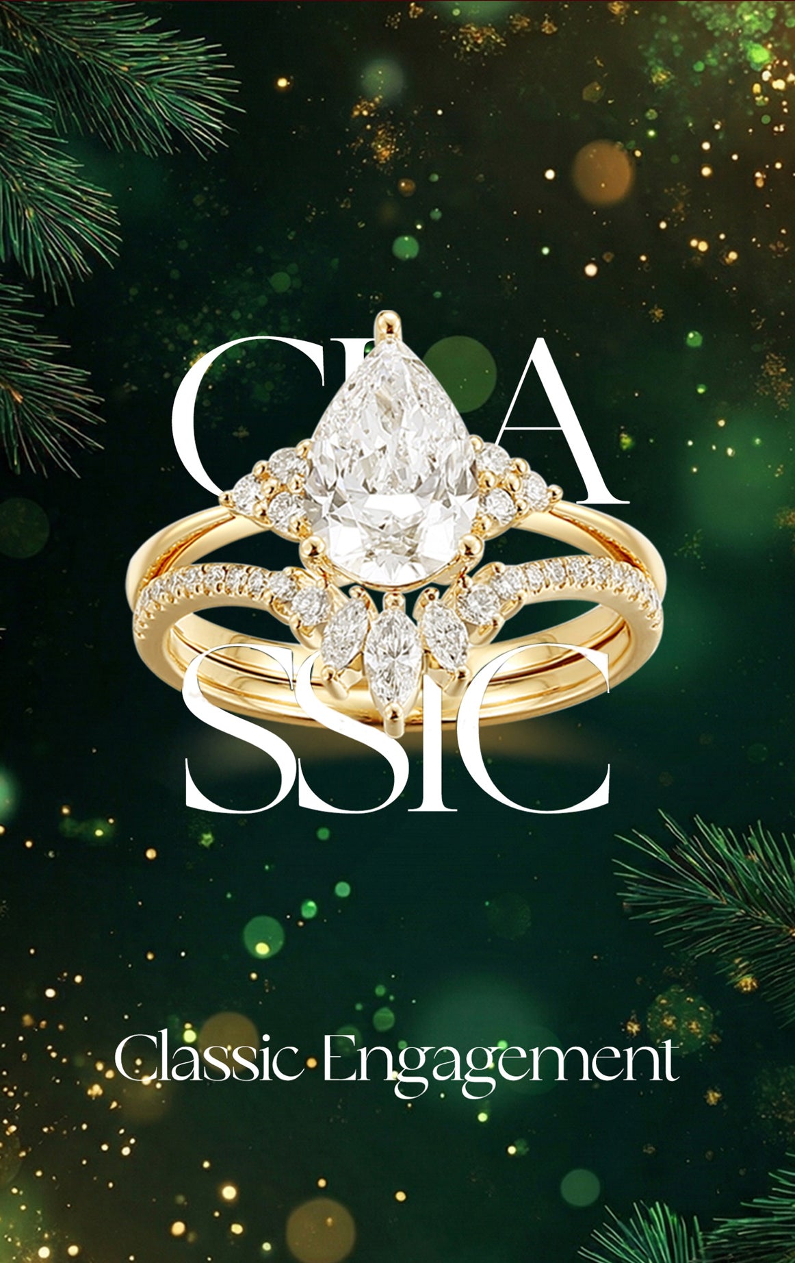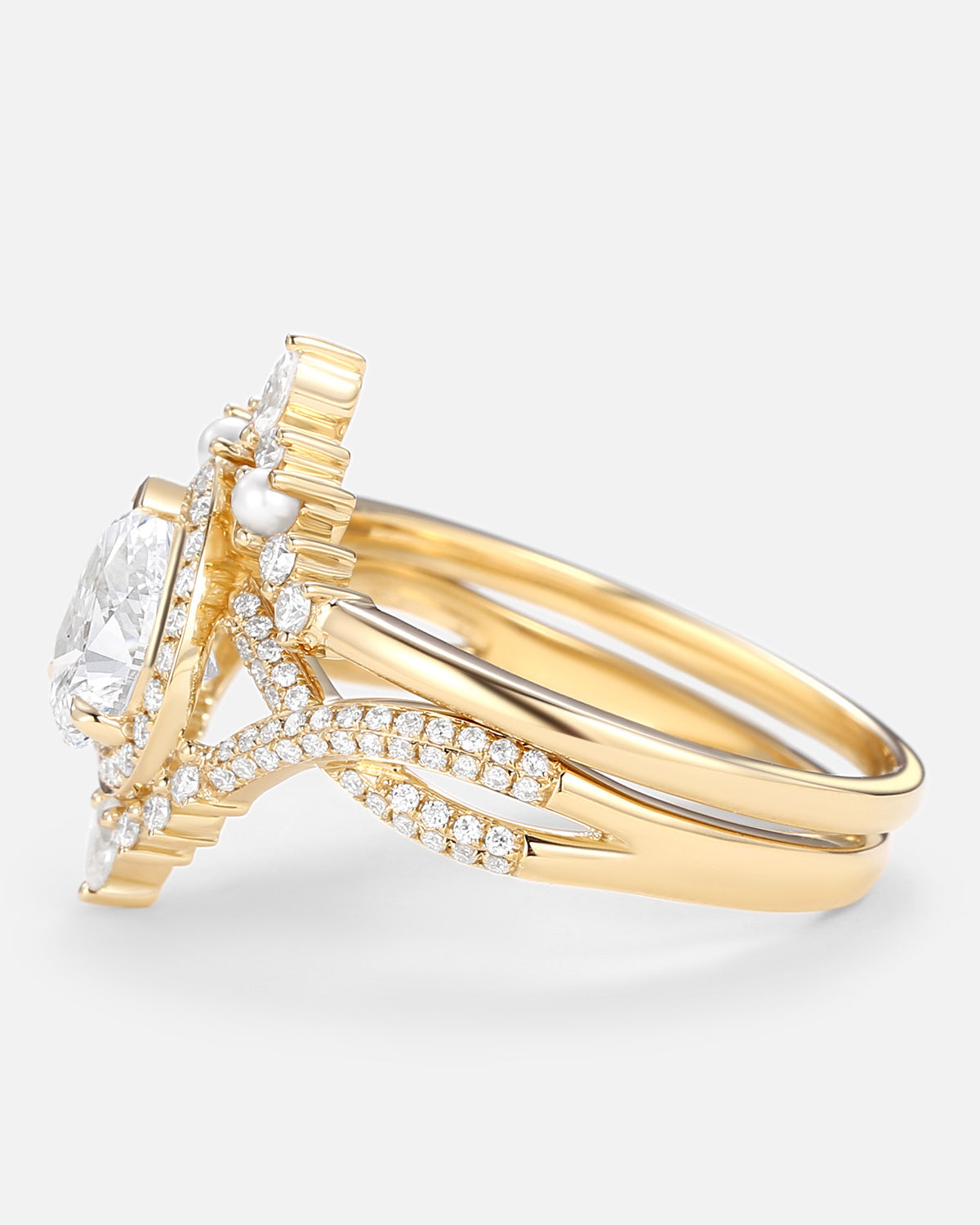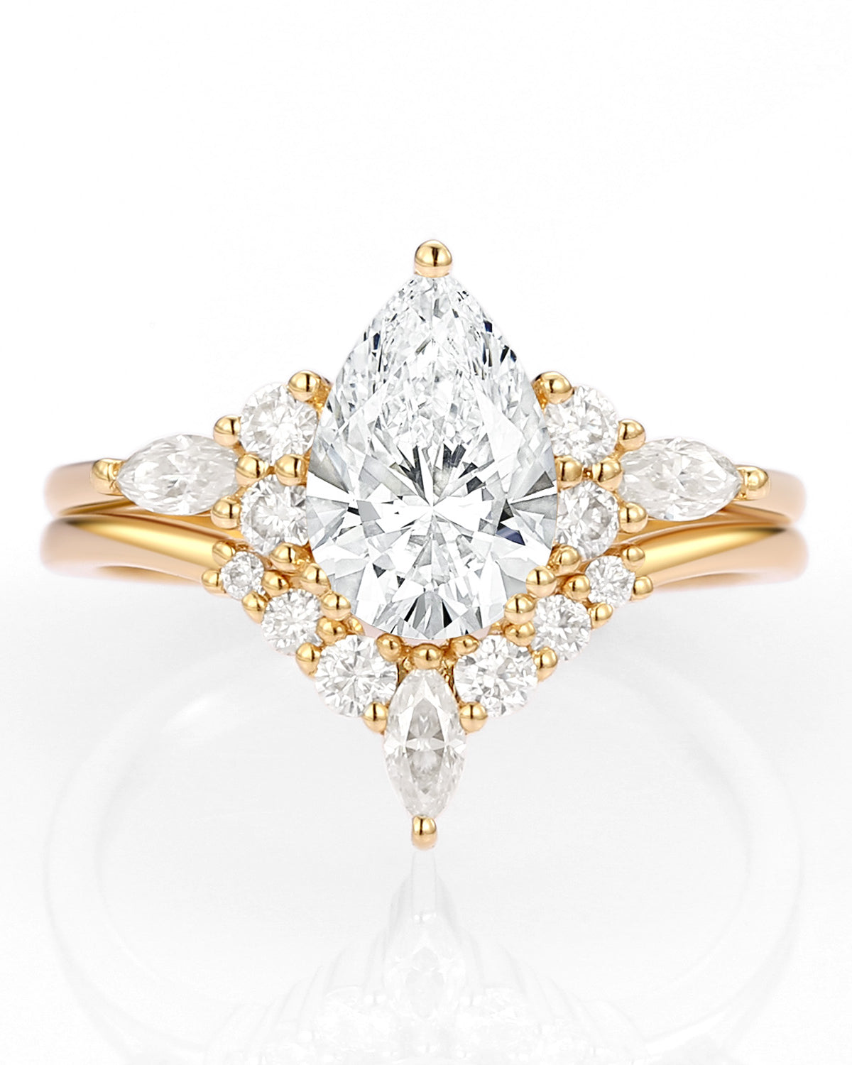1.0ct Pear Lab Grown Diamond Leafy Ring Set 2pcs - Ona