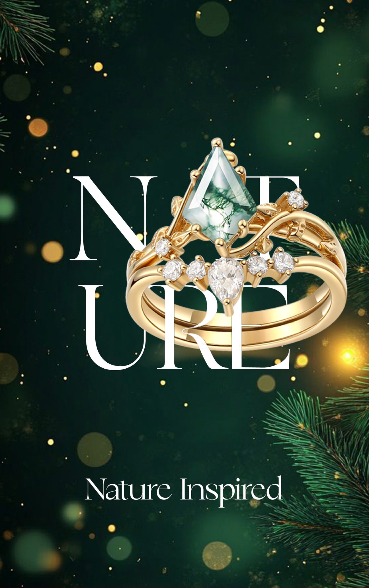 Classic Engagement - Unique Moss Agate Engagement Ring Set 2pcs - Lydia