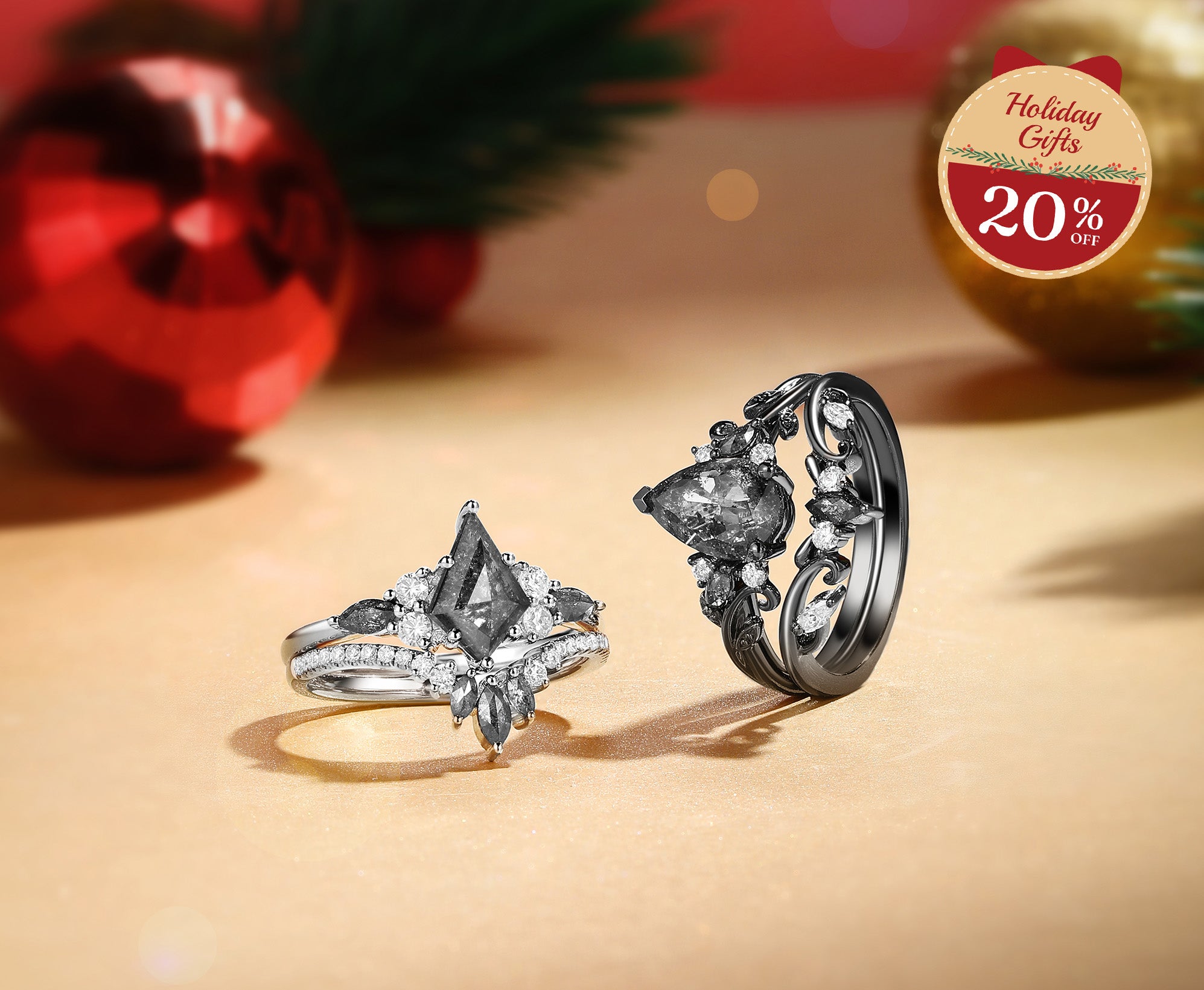 Kite Cut Salt and Pepper Diamonds Ring Set 3pcs - Kinsley