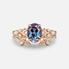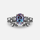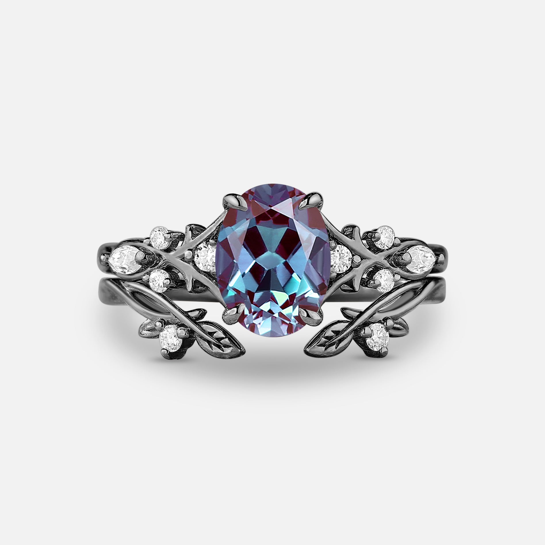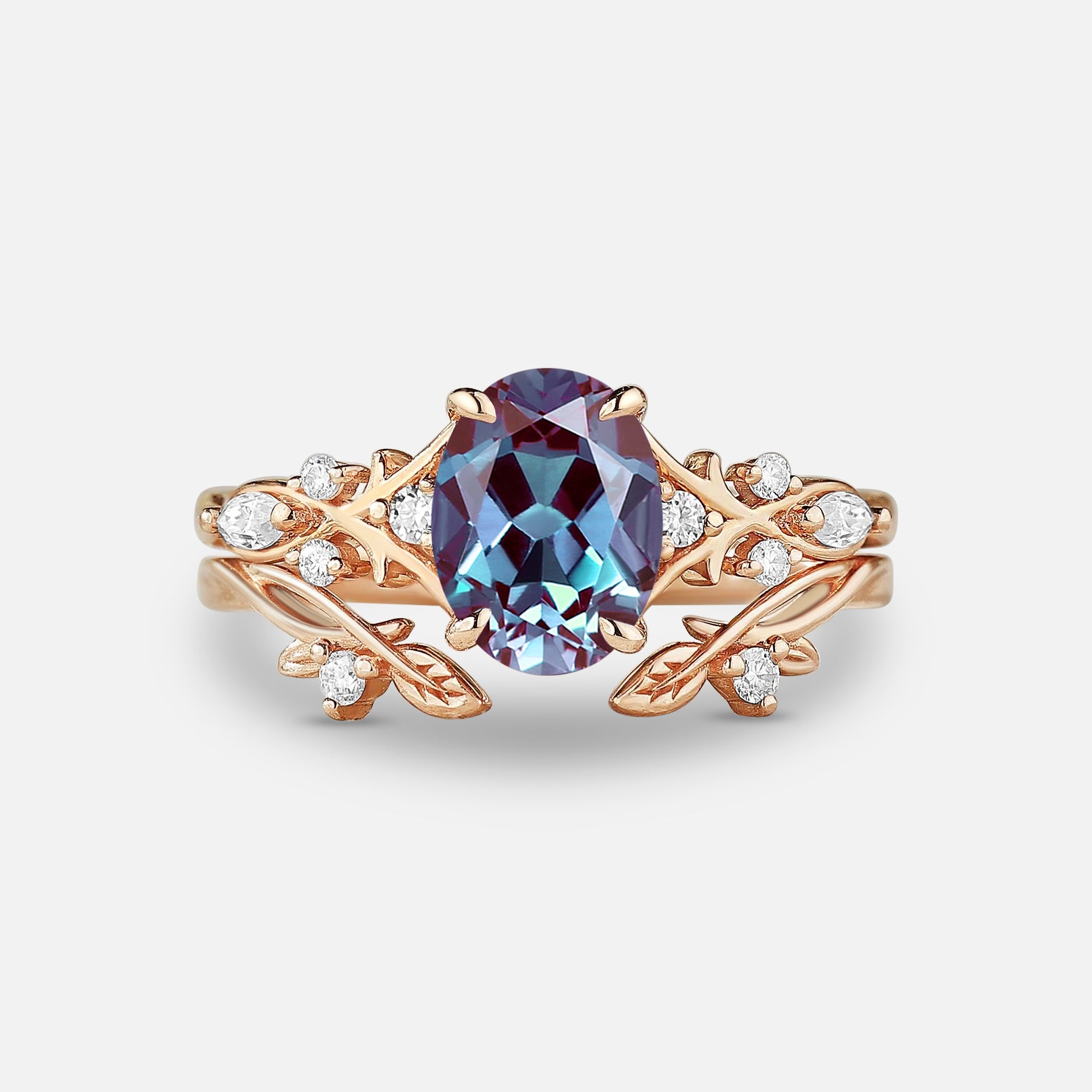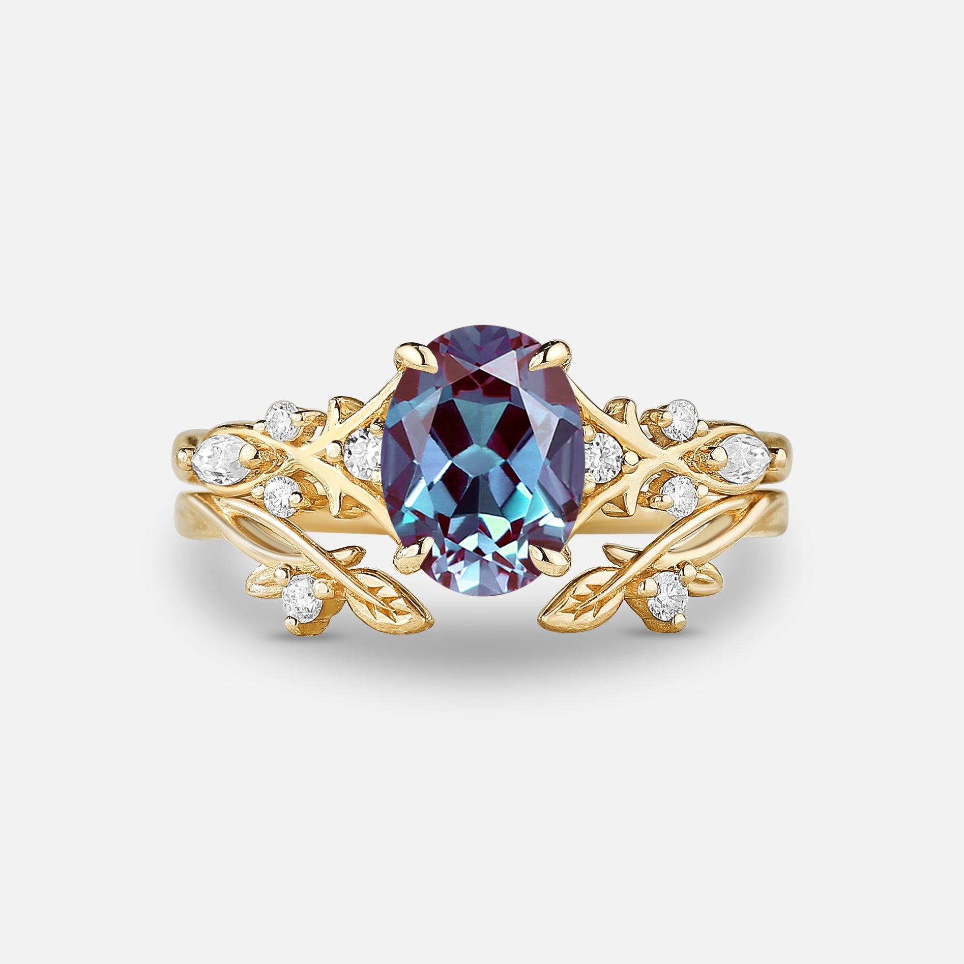 Lab Alexandrite Oval Cut Cluster Engagement Ring Set 2pcs - Rowan