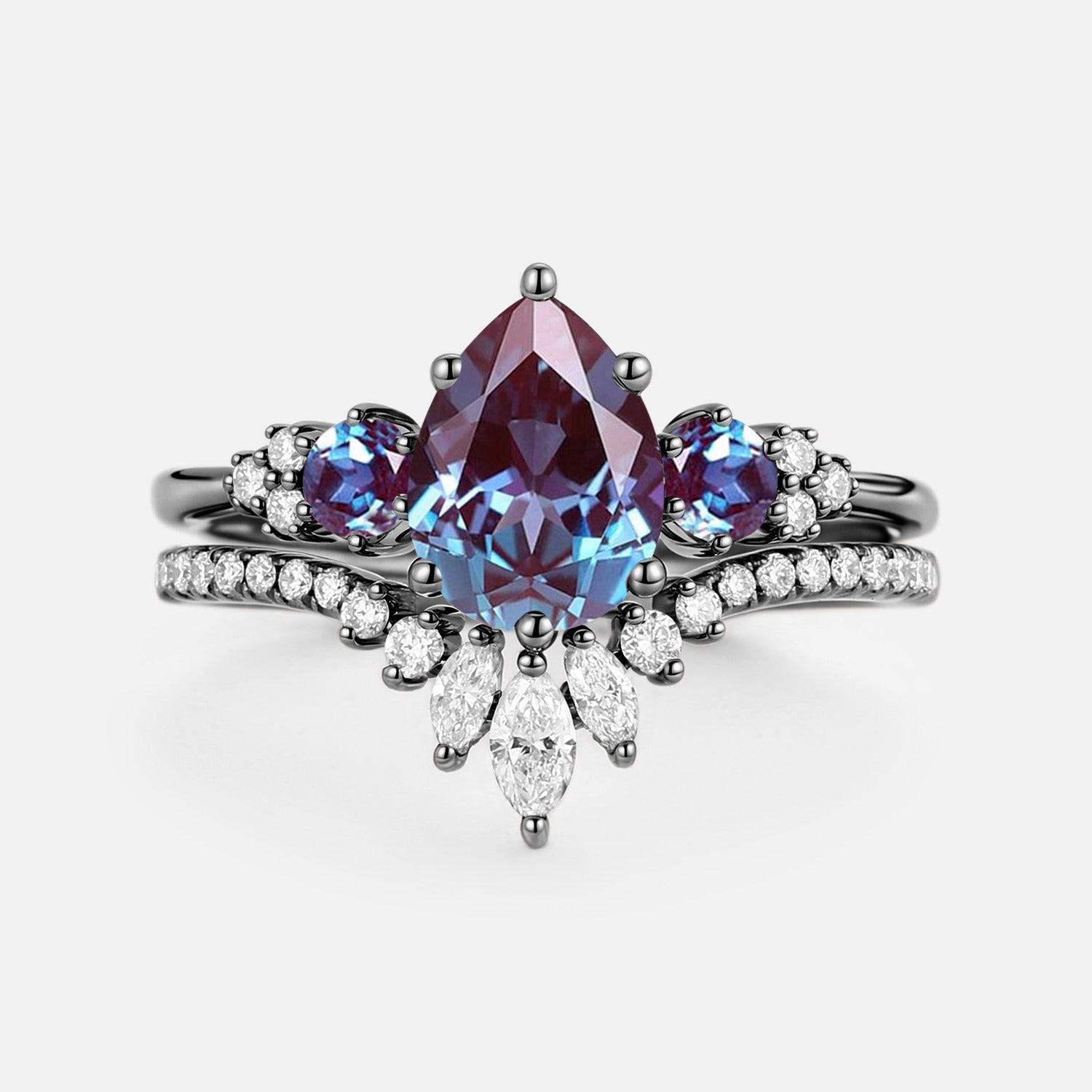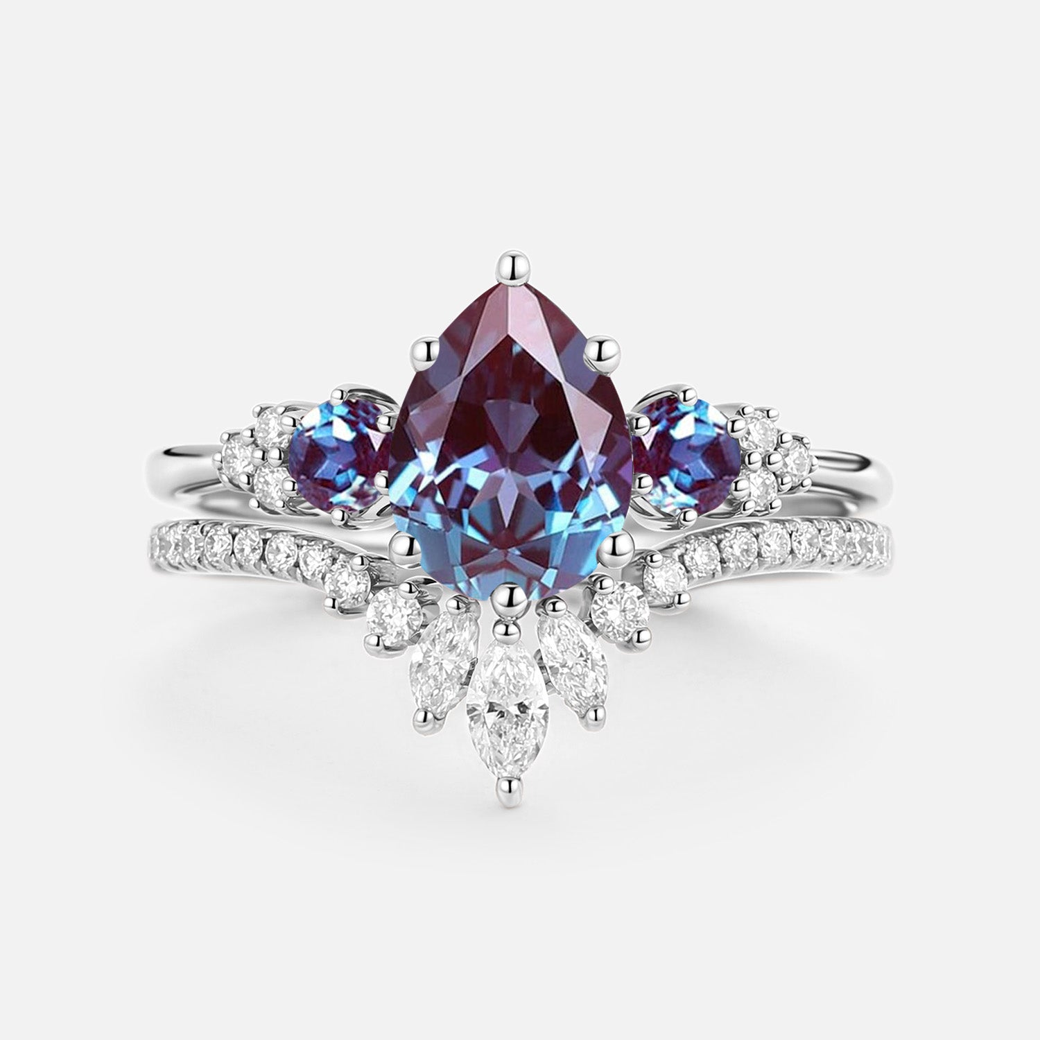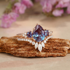 Pear Cut Lab Alexandrite & Moissanite Cluster Ring Set 2pcs - Lexi
