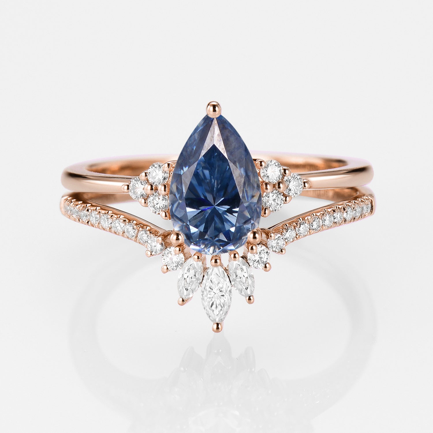 Classic Engagement - Pear Moissanite Engagement Ring Set 2pcs - Lydia