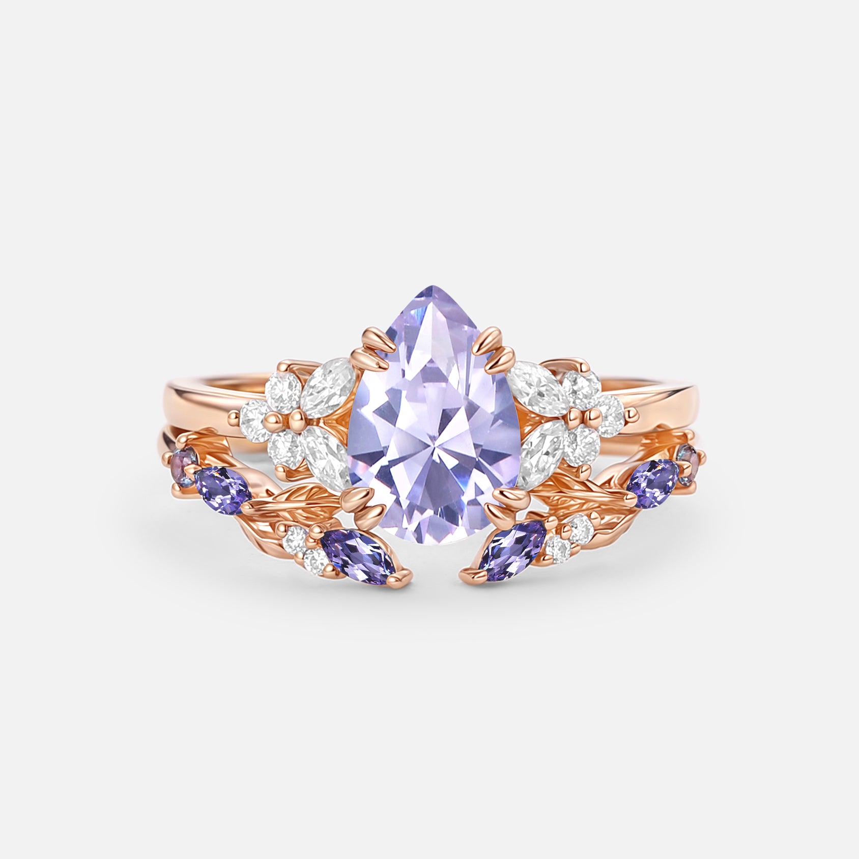 Pearl Bridal Set 2pcs Rose Gold Ring