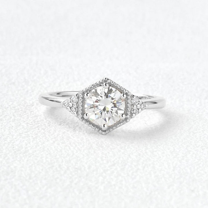 Felicegals 1.0ct Geometric Lab Diamond Gold Ring Unique Hexagon Halo Ring Beaded Ring Geometric Ring Yellow Gold Triangle Lab Diamond Ring Vintage Inspired Jewelry