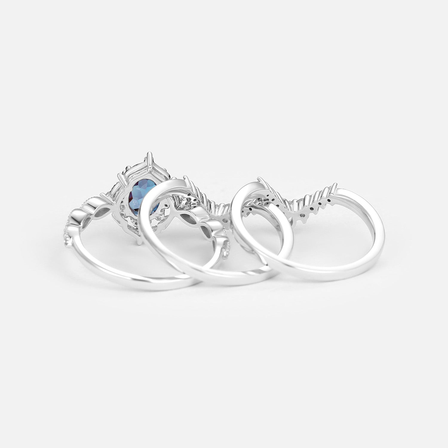1.5ct Alexandrite Signature Vintage Luna Ring Set 3pcs