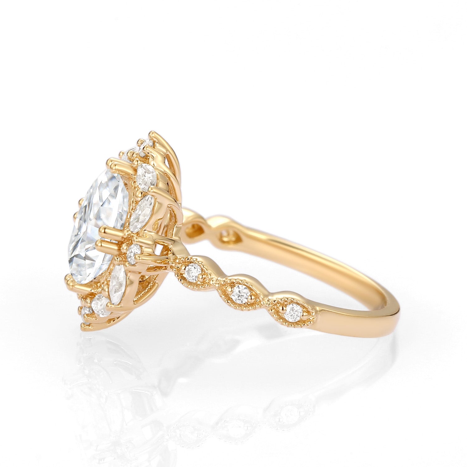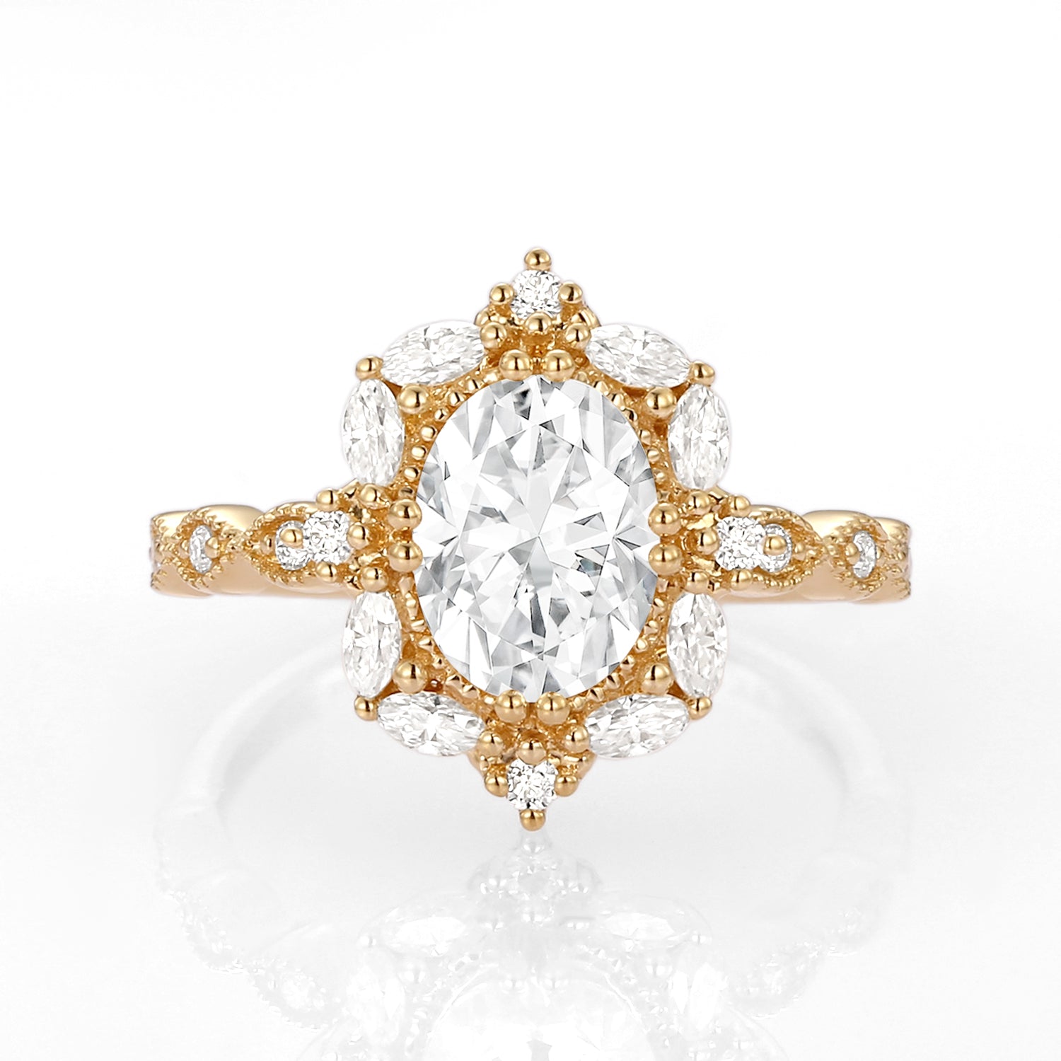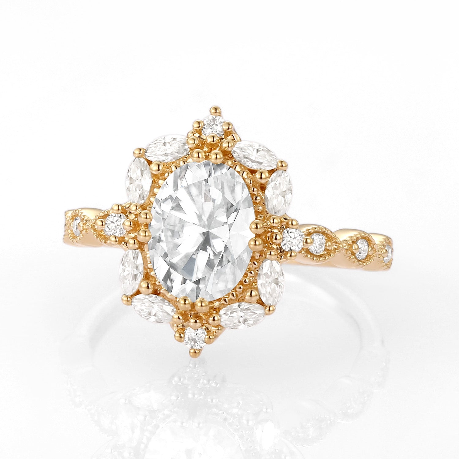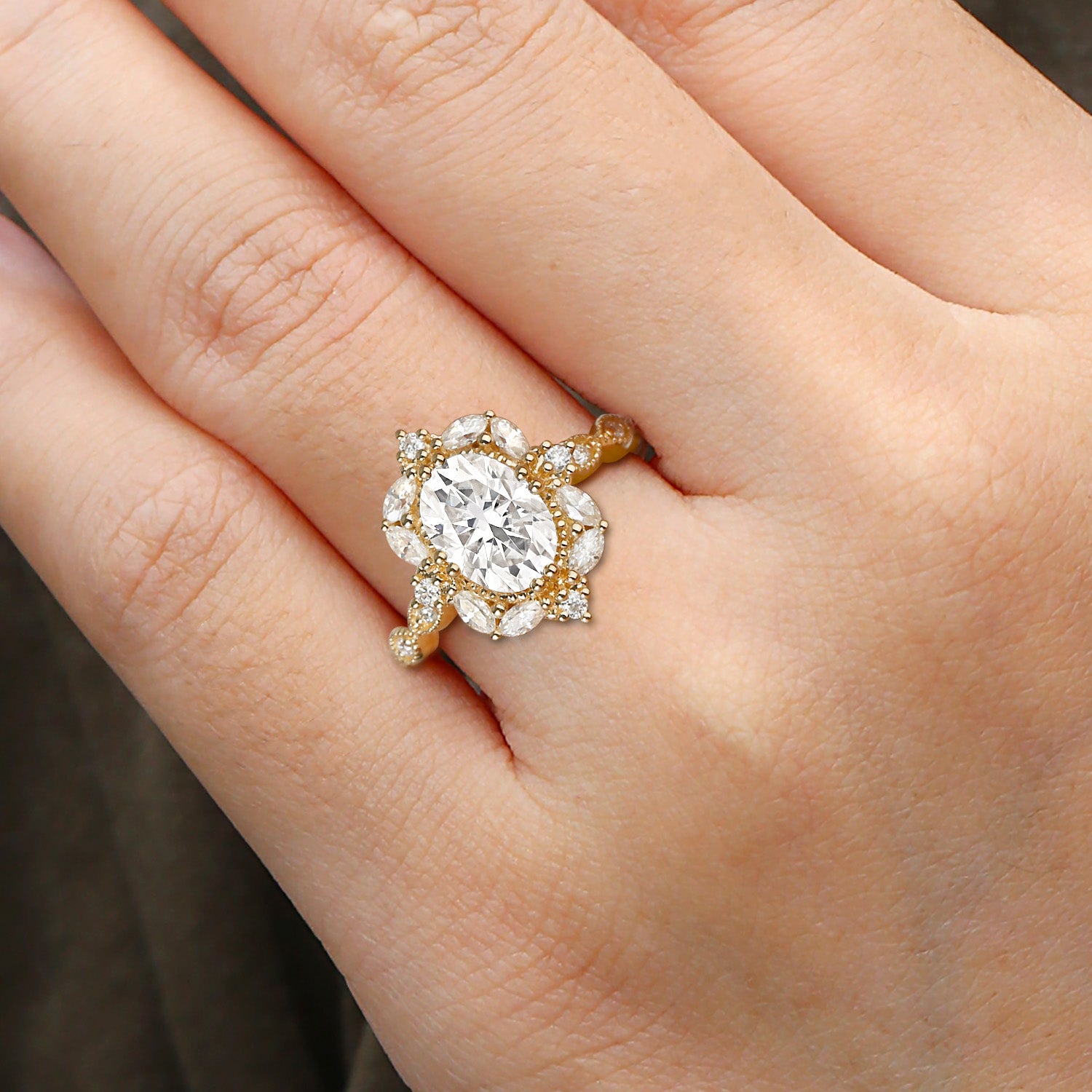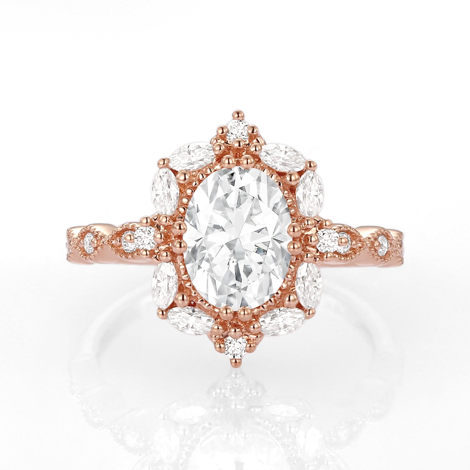 Felicegals Oval Cut Moissanite Halo Rose Gold Ring Marquise Cut Moissanite Bridal Ring Art Deco Milgrain Wedding Ring Promise Gift For Her