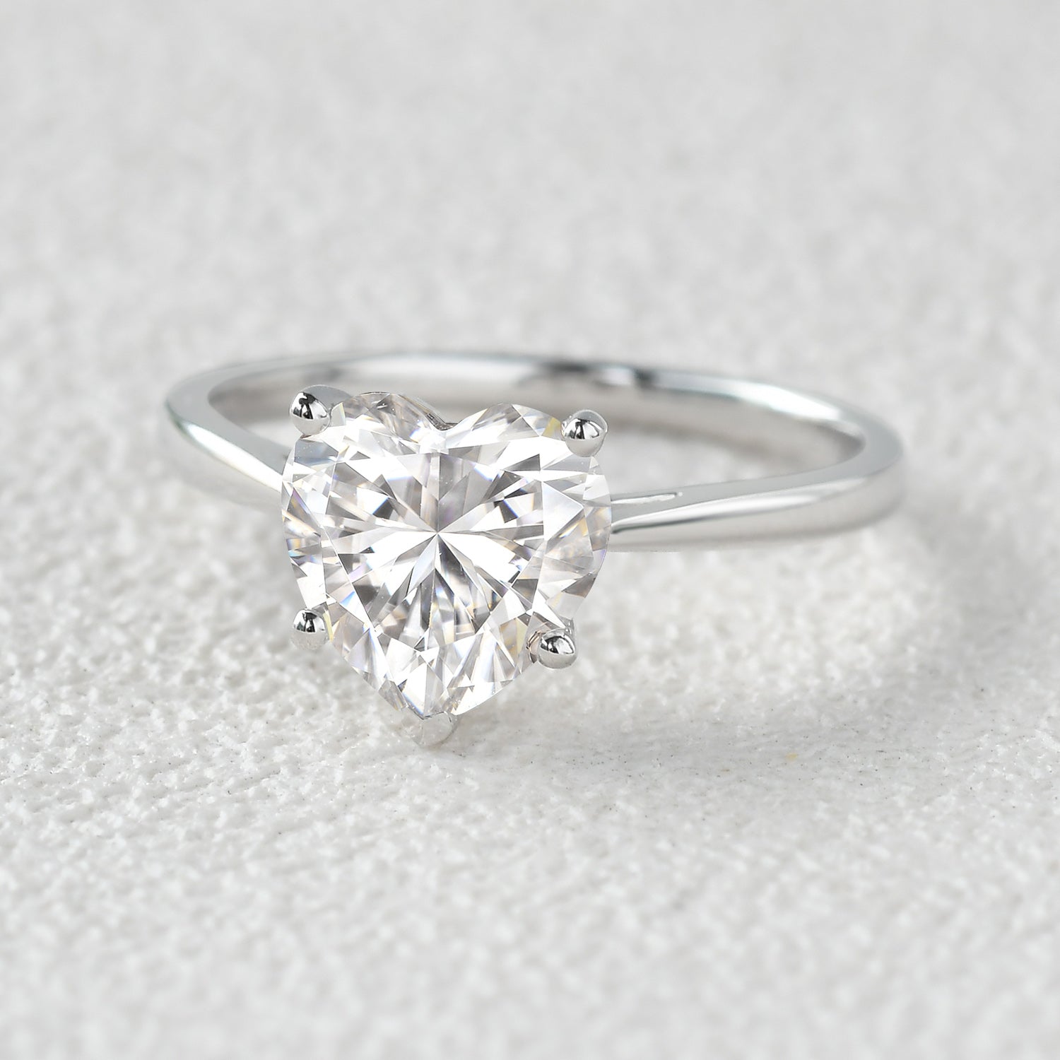 2.0ct Heart Shaped Moissanite Classic Solitaire Ring