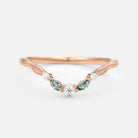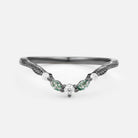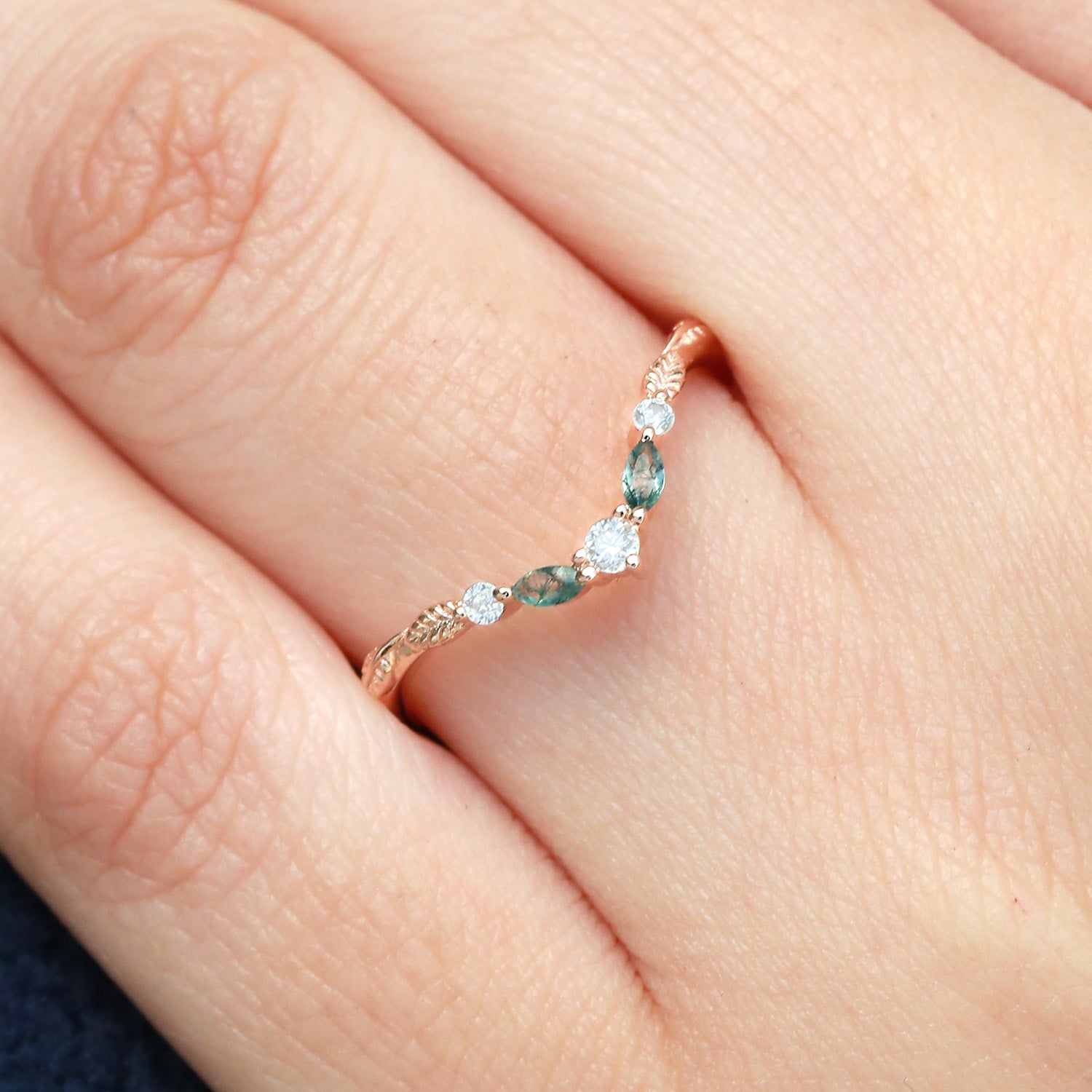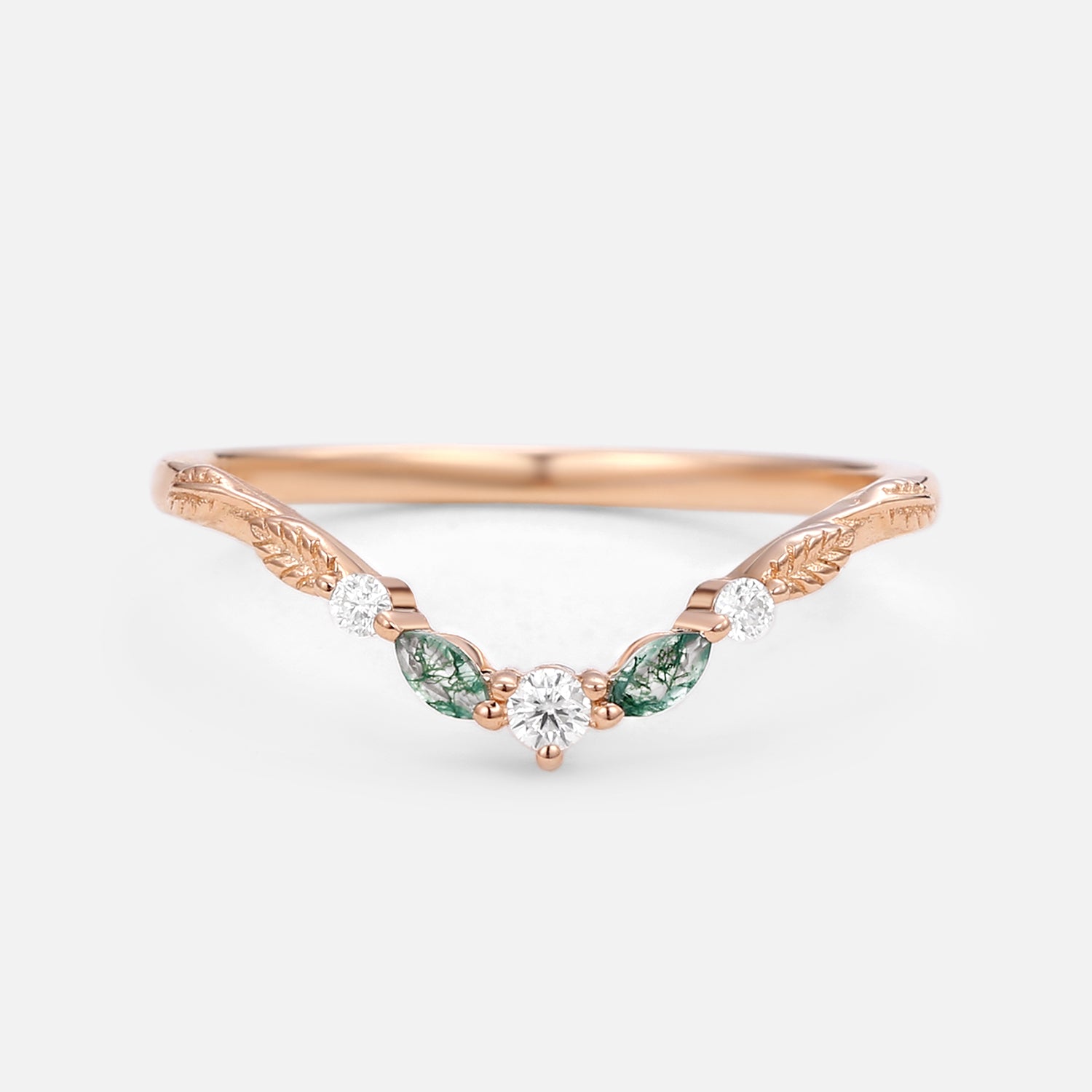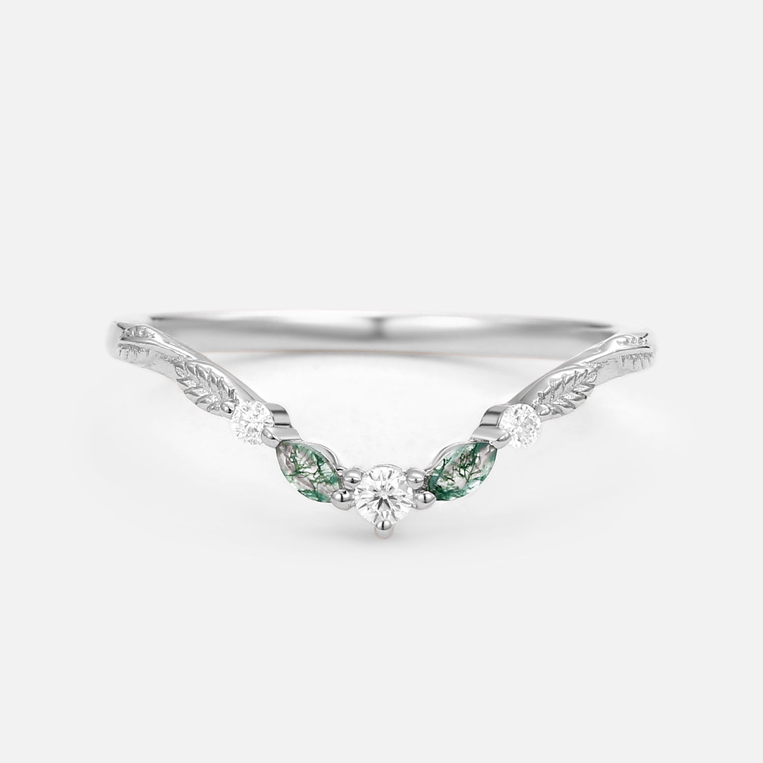 Curved Leafy Moss Agate & Moissanite Wedding Band