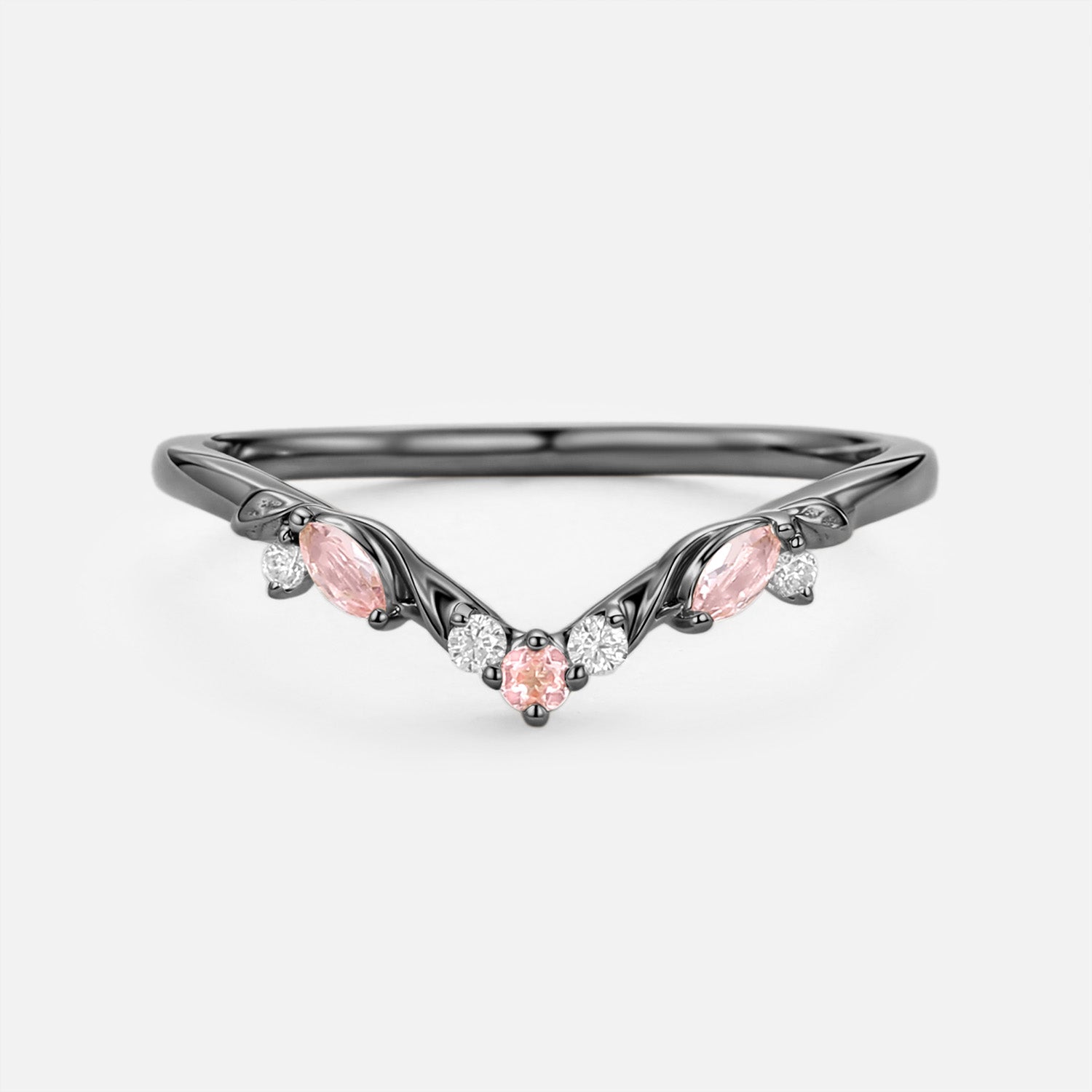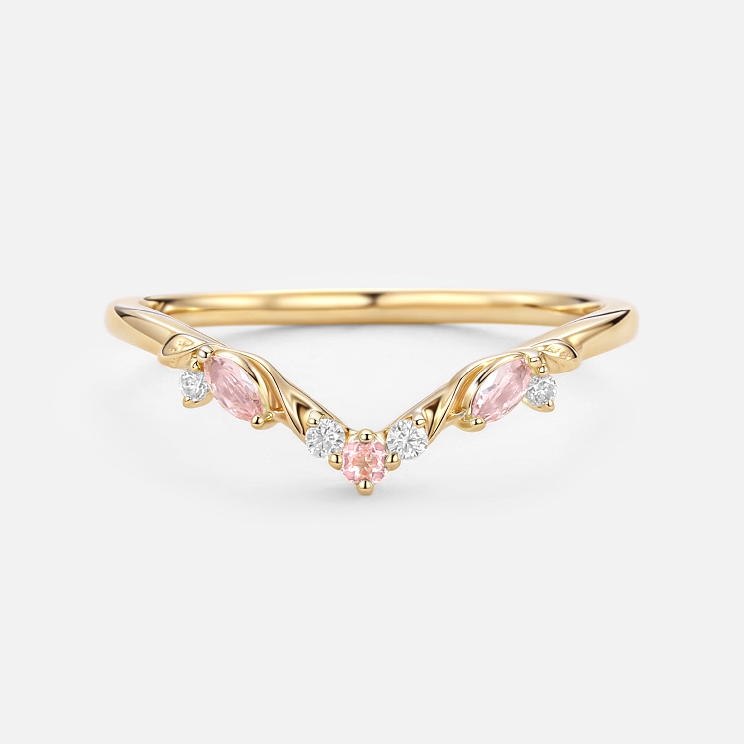 Curved Vintage Inspired Lab Pink Sapphire Band