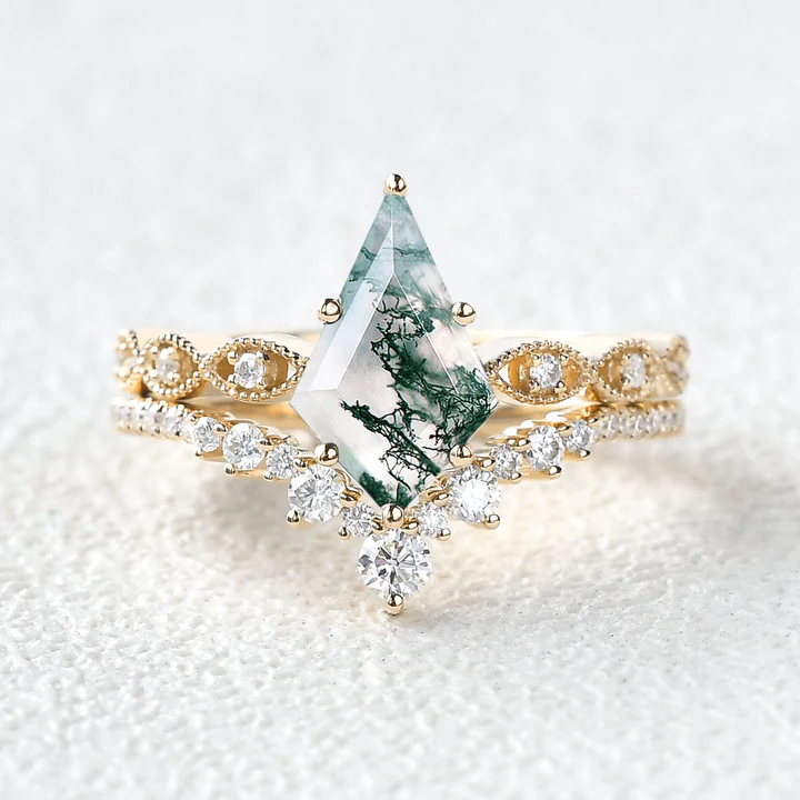 Original link: Vintage Green Kite Cut Moss Agate Engagement Ring Set 2pcs - Winona