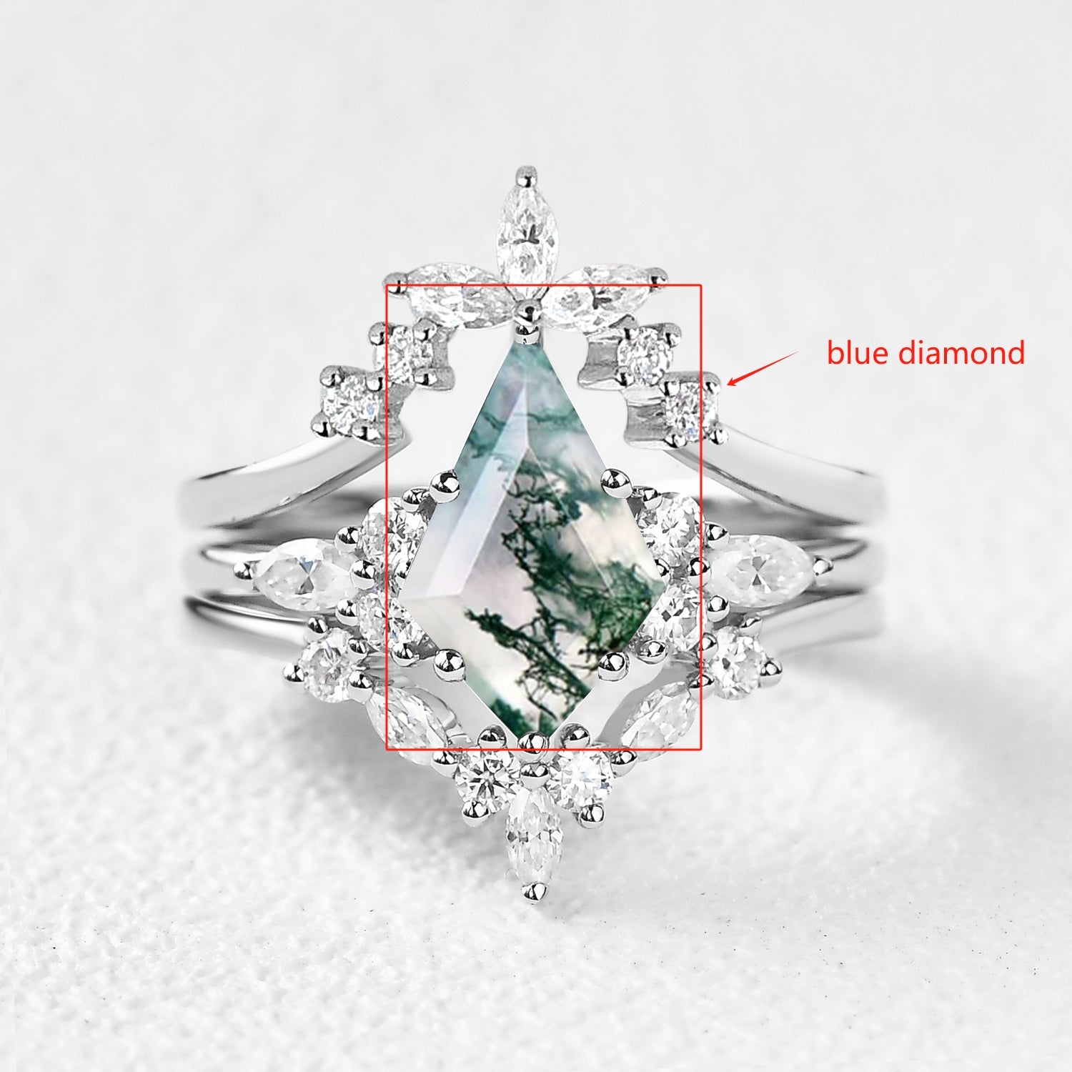 Unique Kite Cut Moss Agate Chevron Engagement Ring Set 3pcs - Kinsley