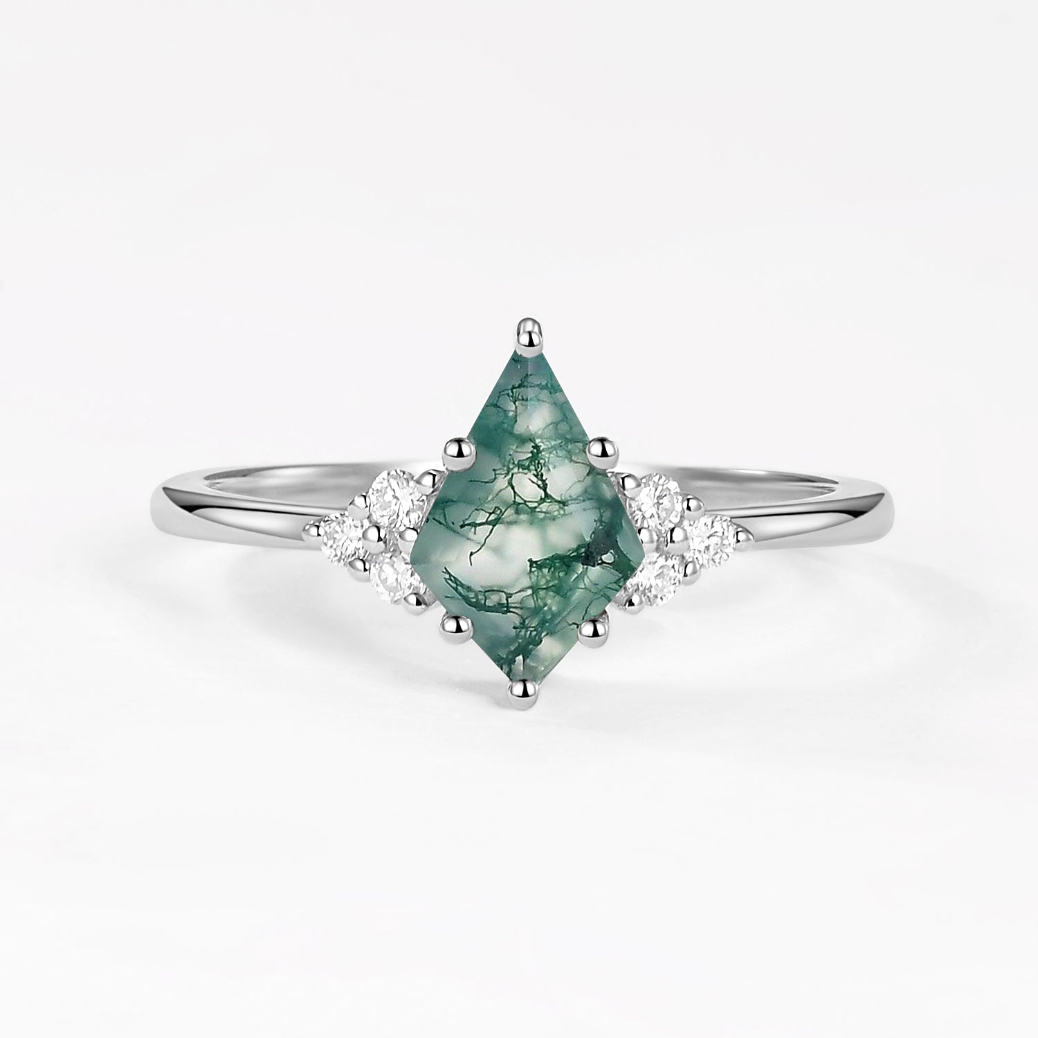 My fiancé proposed with this stunning ring on a romantic WV getaway in the mountains and it is absolutely GORGEOUS. Photos do not do it justice. The clarity of the moss agate stone is perfect and I love the accent of the stone that he customized and added to the wedding band! I love this ring so much! Thank you for creating such unique pieces for girls like me that prefer the non- traditional route!