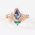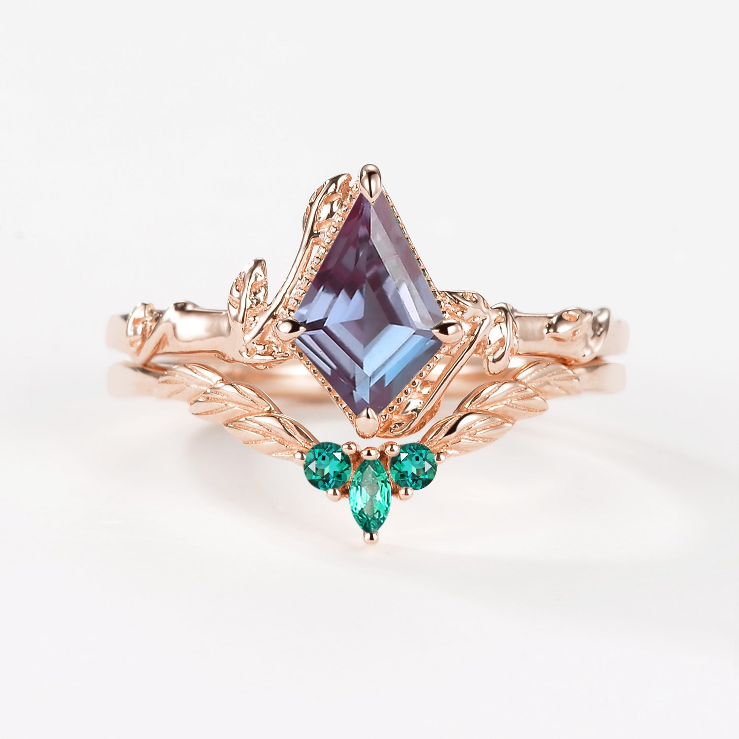 Lab Alexandrite Leafy Inspired Engagement Ring Sets 2pcs - Isla