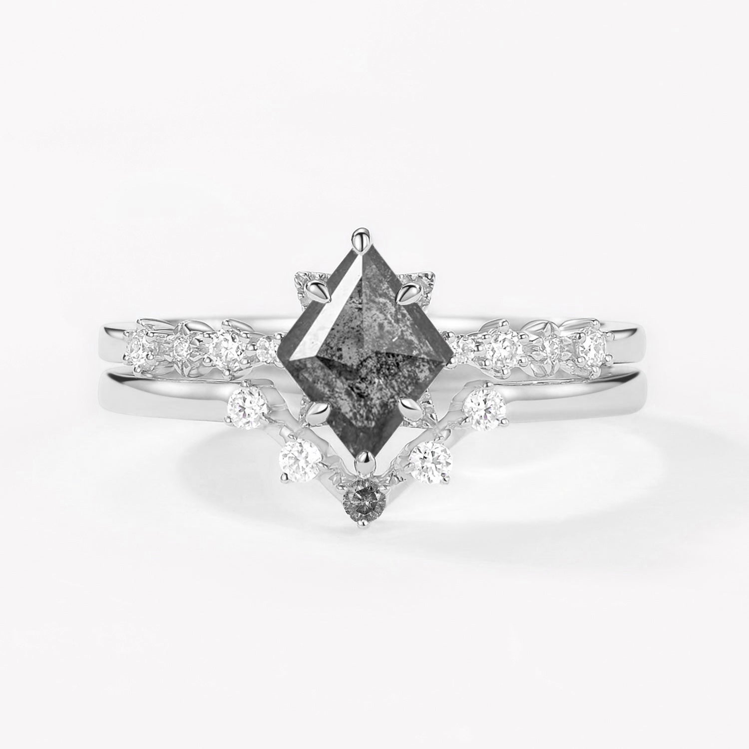 Salt and Pepper Diamonds Curved Ring Set 2pcs
