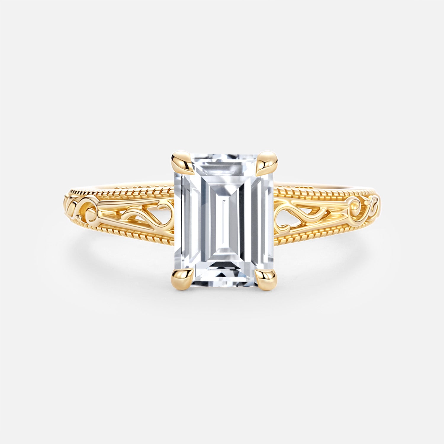 Emerald Cut Lab Grown Diamond Engraved Solitaire Engagement Ring - Tabitha