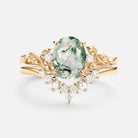 - Oval Cut Moss Agate Leafy Gold Ring Set 2pcs - Clover