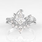 - Nature Inspired - Unique Kite Cut Moss Agate Leafy Bridal Ring Sets 2pcs - Willow