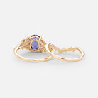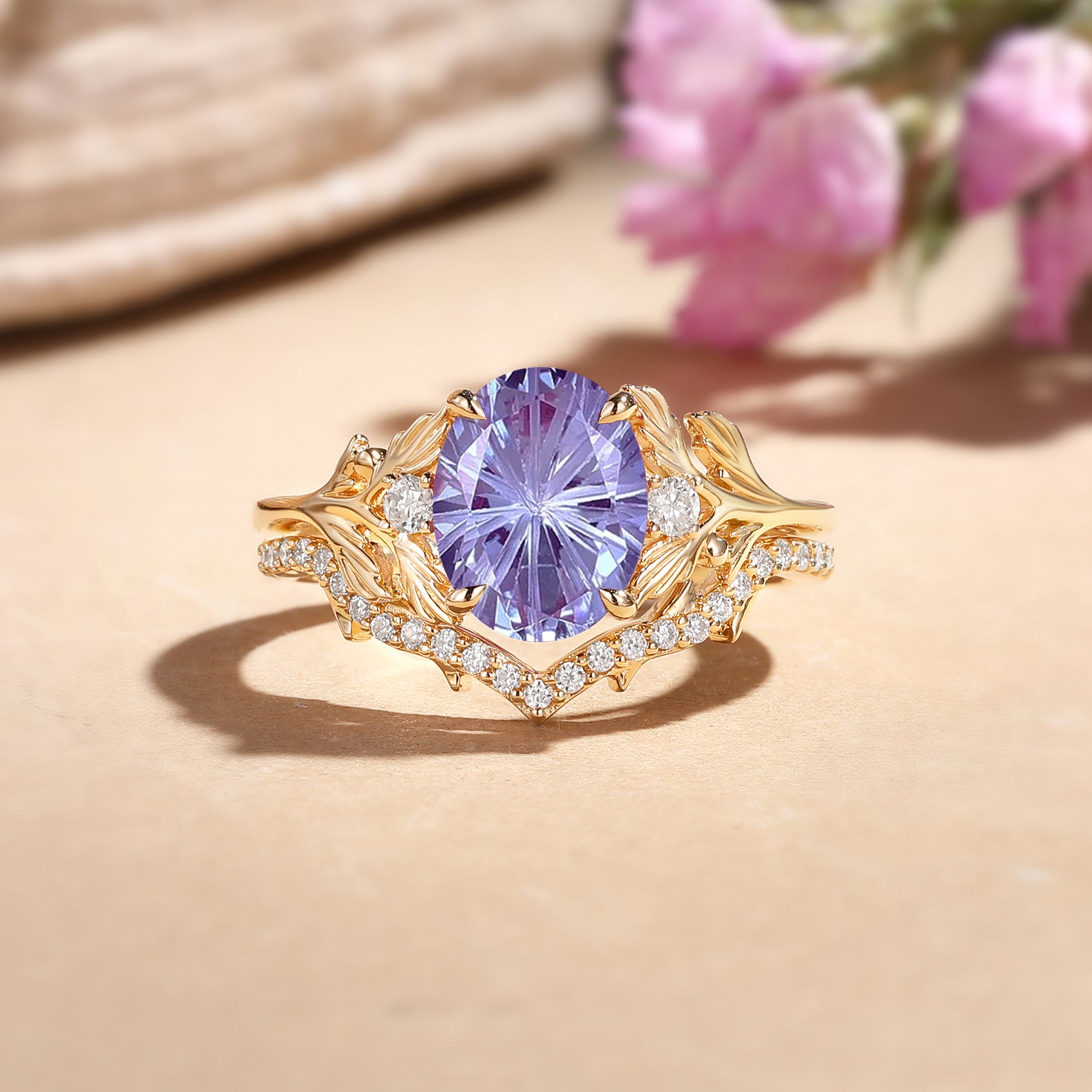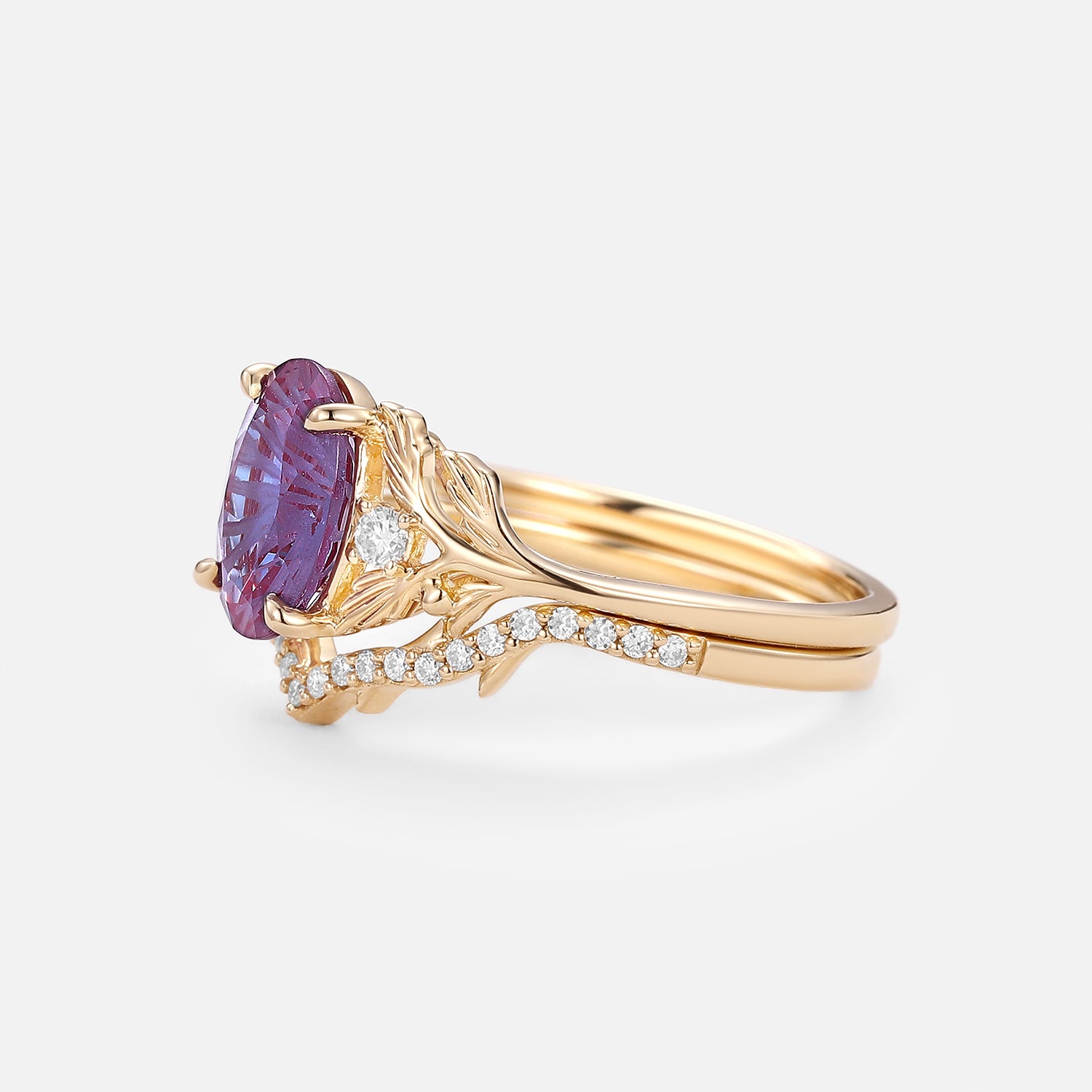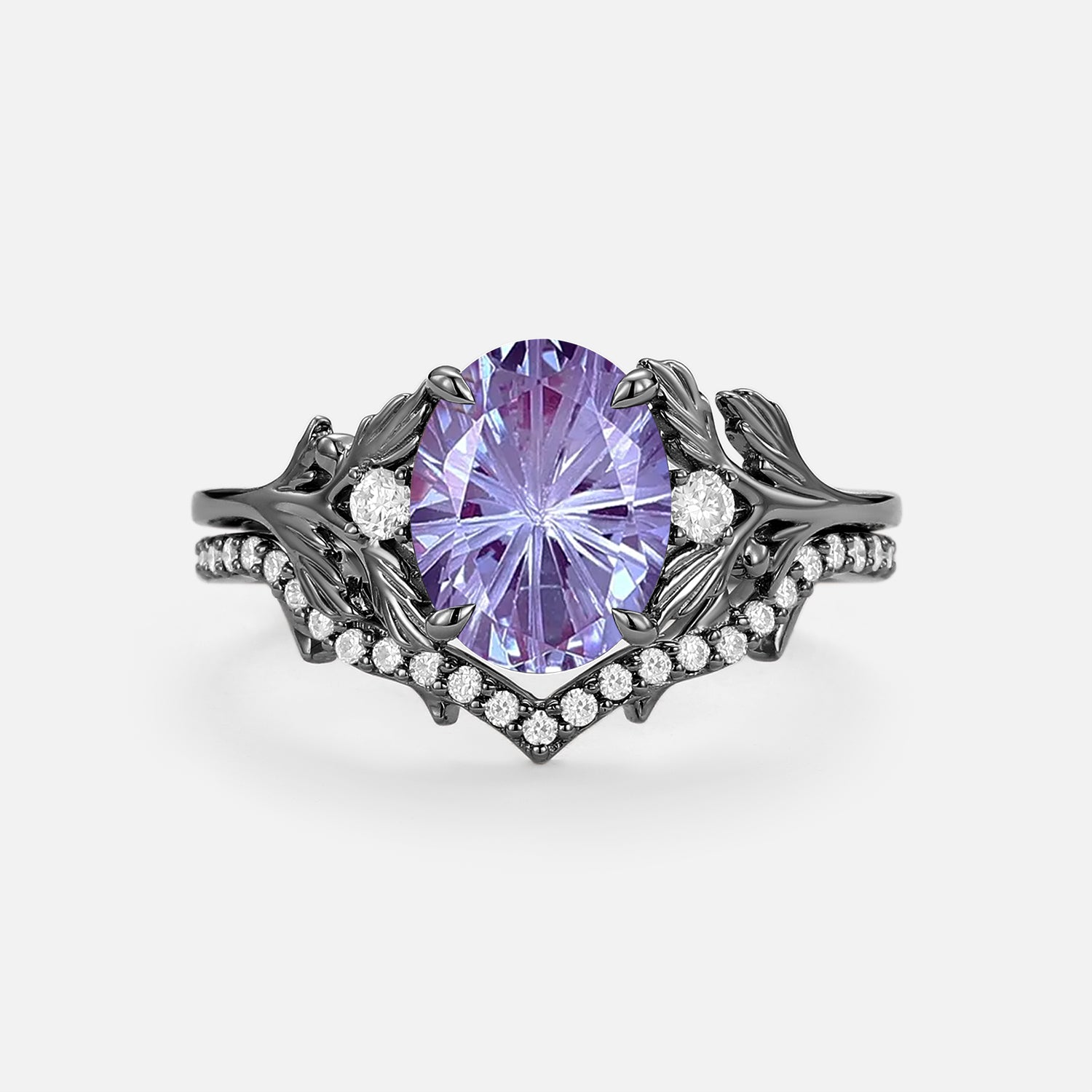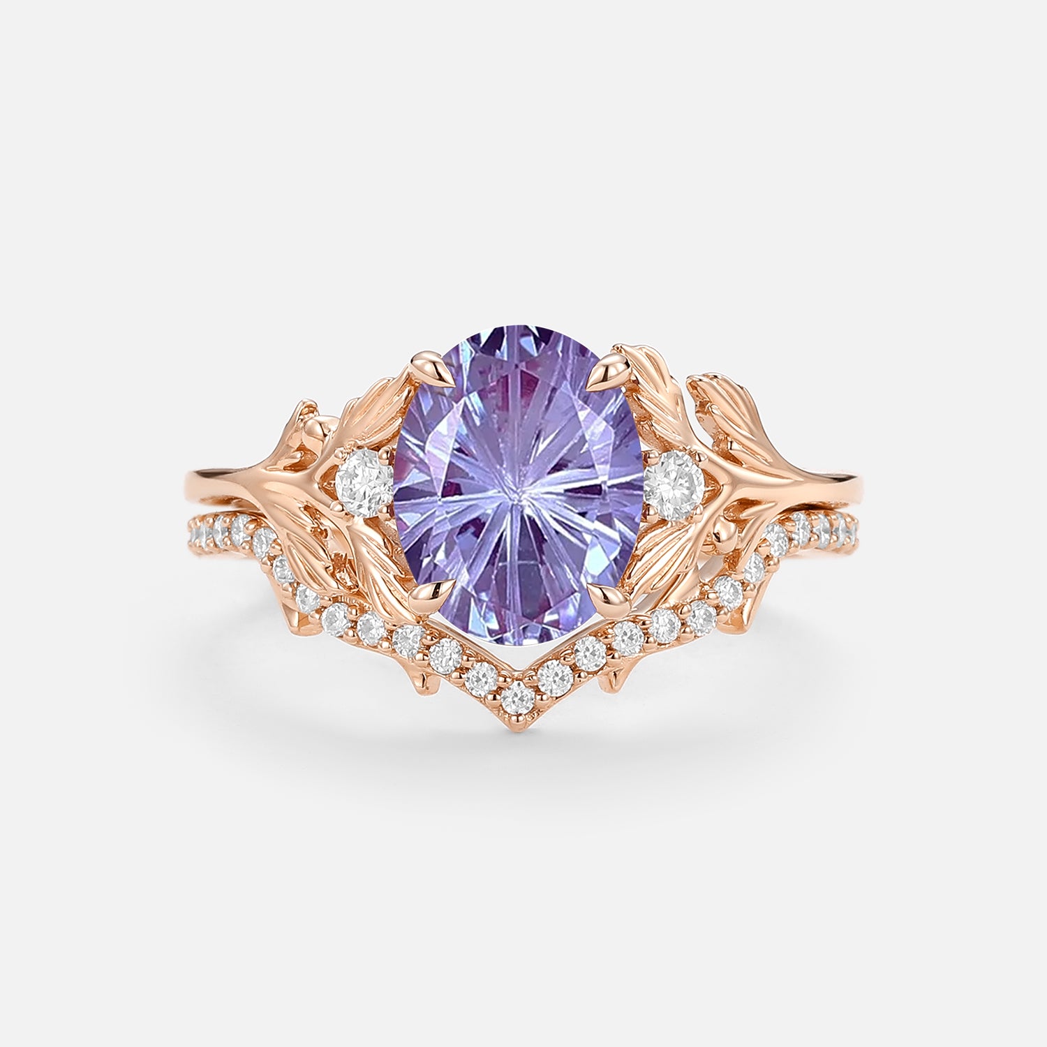 Firework Cut Lab Alexandrite Oval Cut Leaf Ring Set 2pcs - Azalea