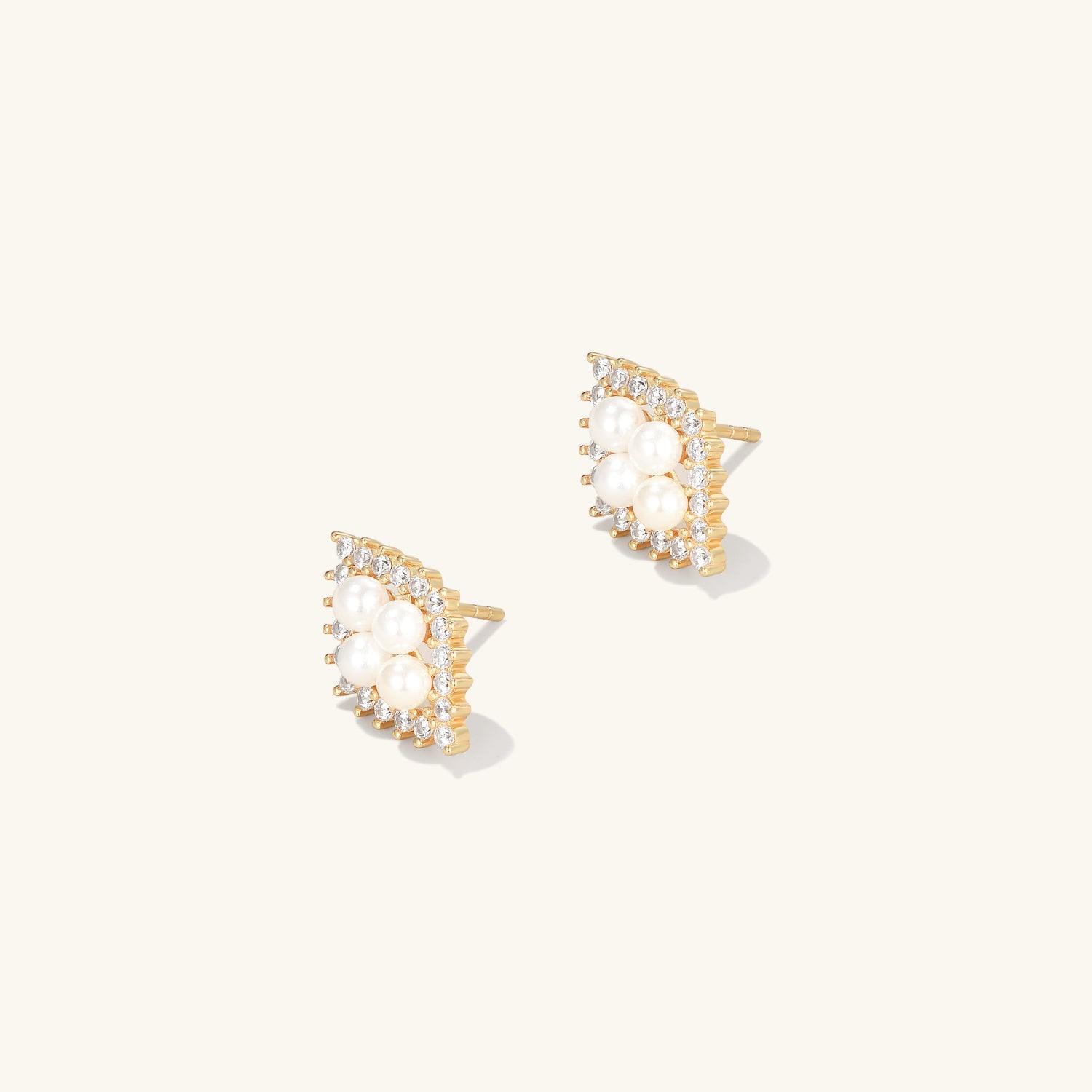 Freshwater Pearls & Moissanite Vintage Inspired Yellow Gold Earrings