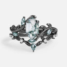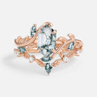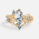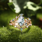 Green Nature Moss Agate Long Hexagon Vine Engagement Ring Set 2pcs - Daphne