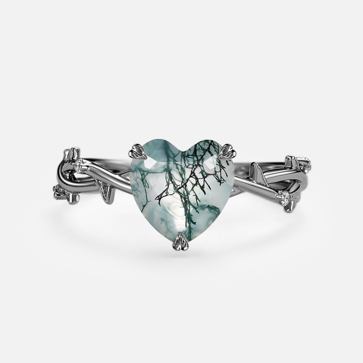 Heart Natural Moss Agate Infinity Engagement Ring - Bramble