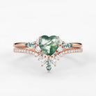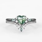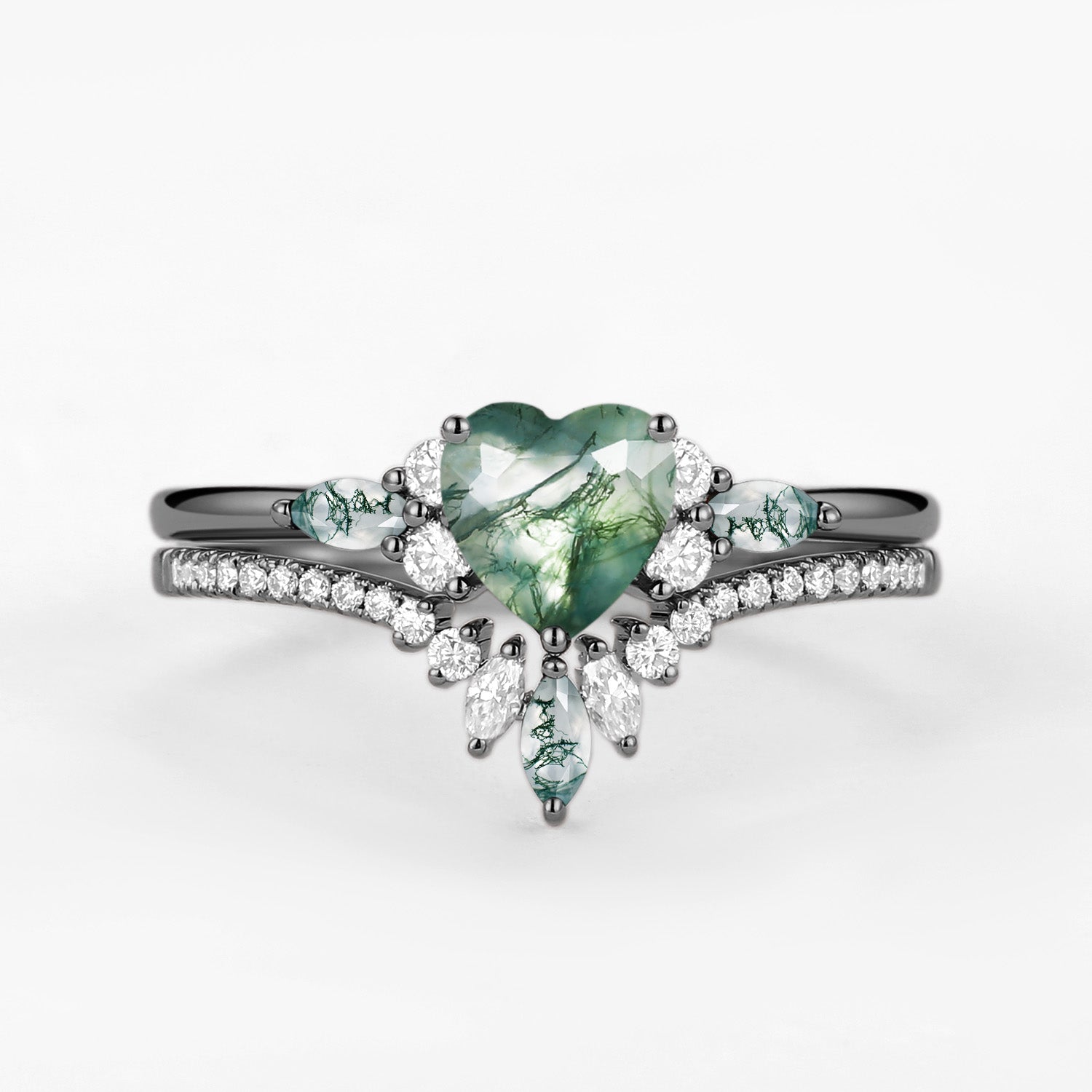 Heart Shaped Natural Moss Agate Engagement Ring Set 2pcs - Rebecca