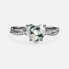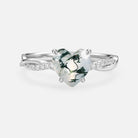 Heart Shaped Twisted Vine Moss Agate Engagement Ring - Betty