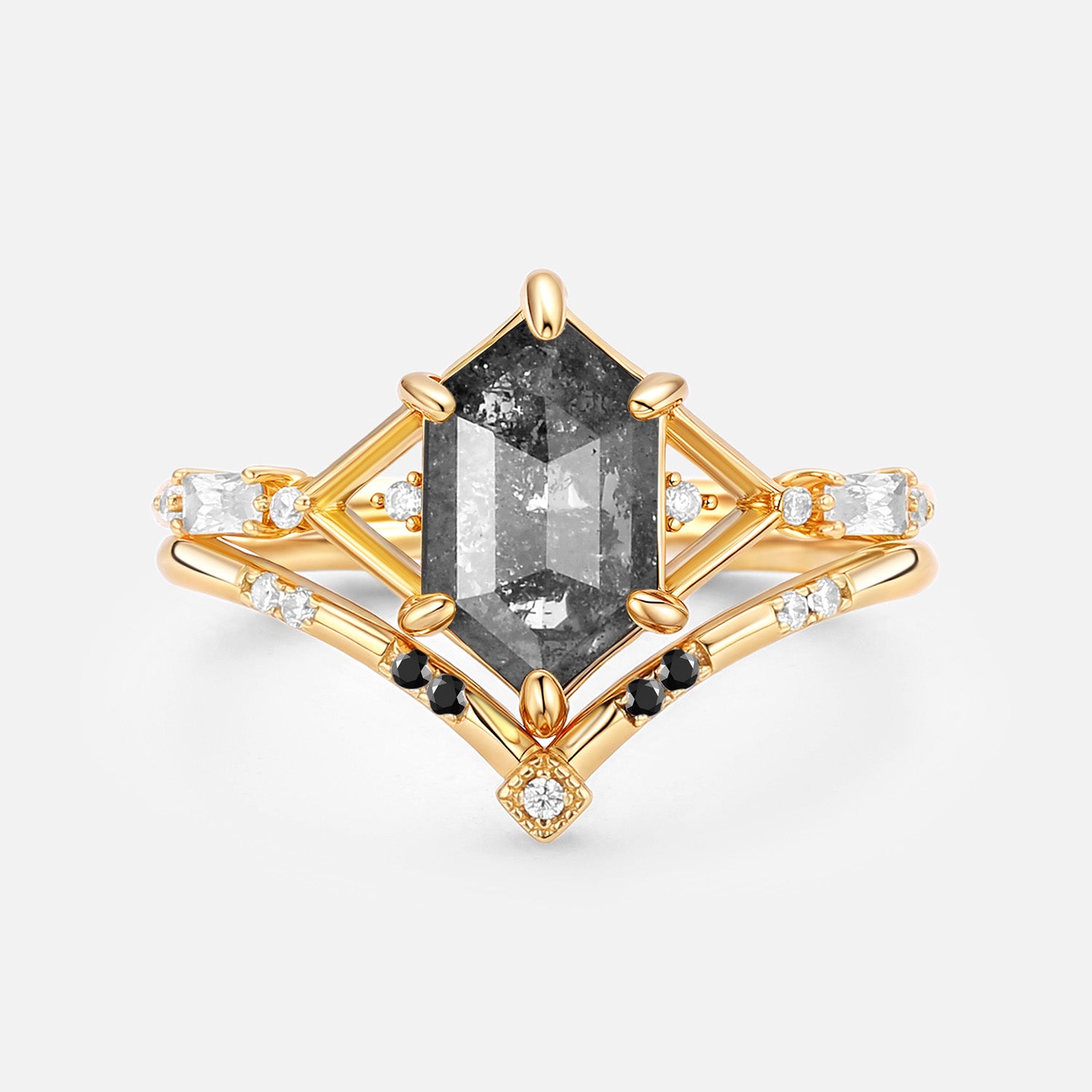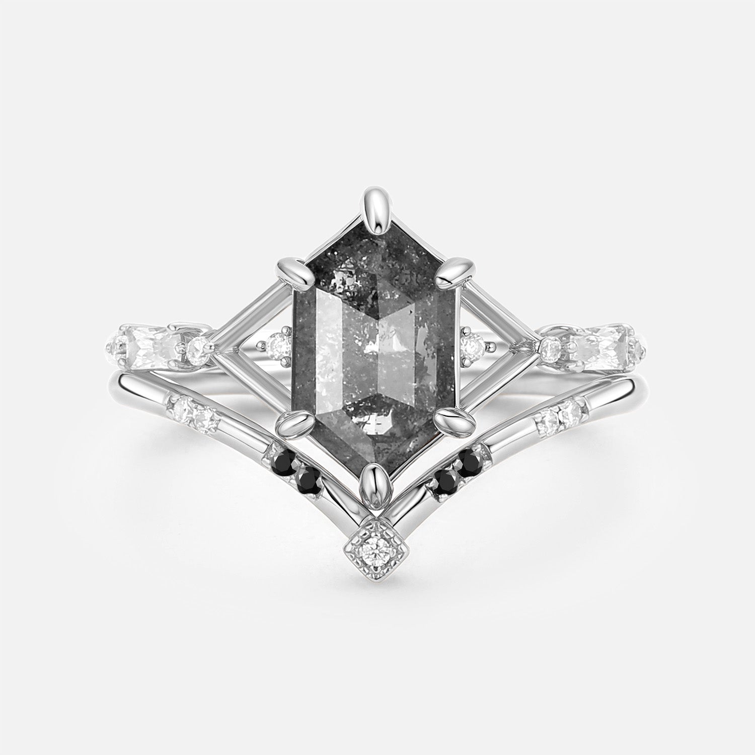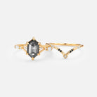 Hexagon Salt and Pepper Diamonds Ring Set 2pcs - Storm
