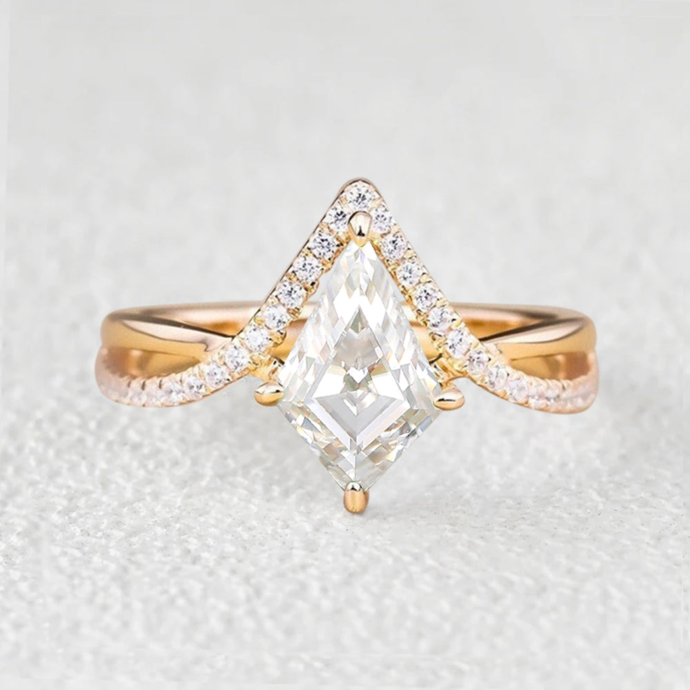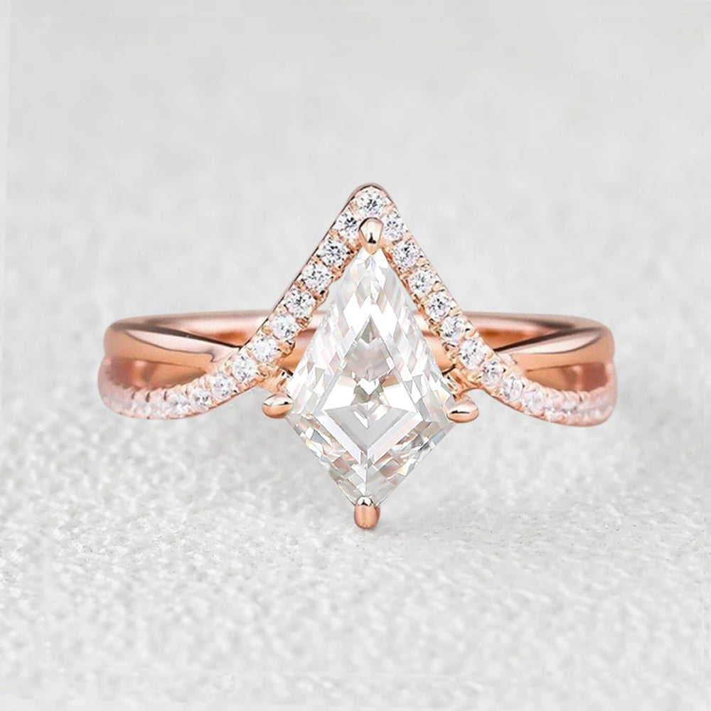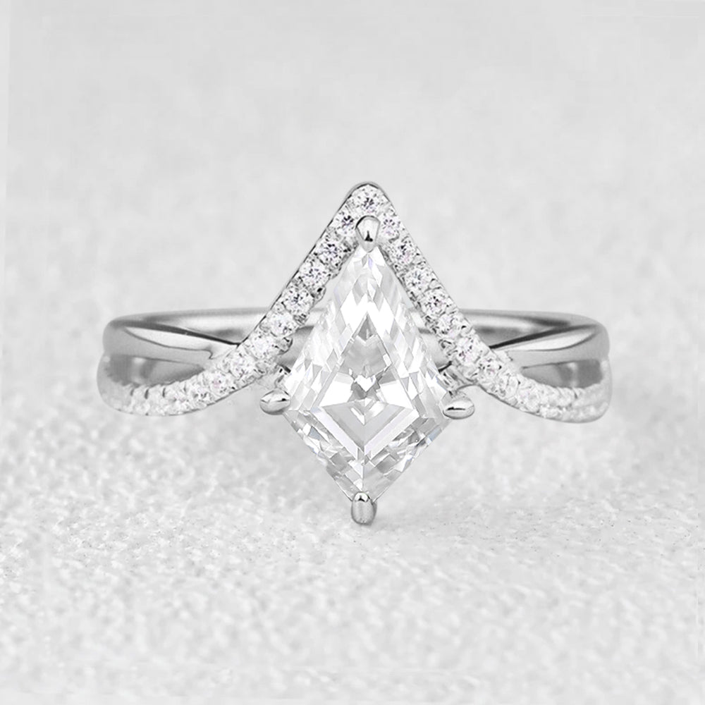 Kite Cut Moissanite White Gold Unique Engagement Ring