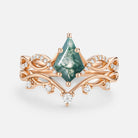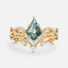 Kite Moss Agate Twist Engagement Ring Set 2pcs - Phyllon