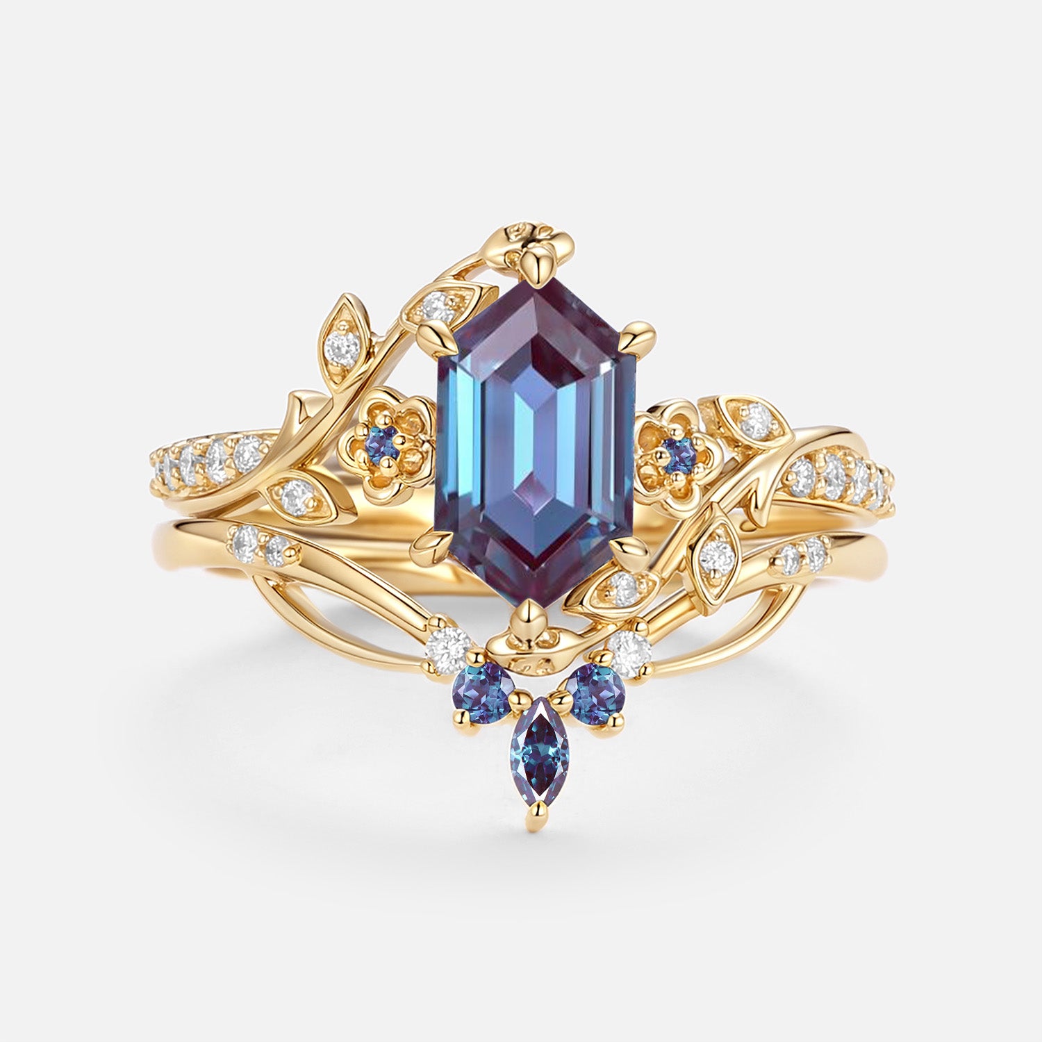 Lab Alexandrite Elongated Hexagon Engagement Ring Set - Zane