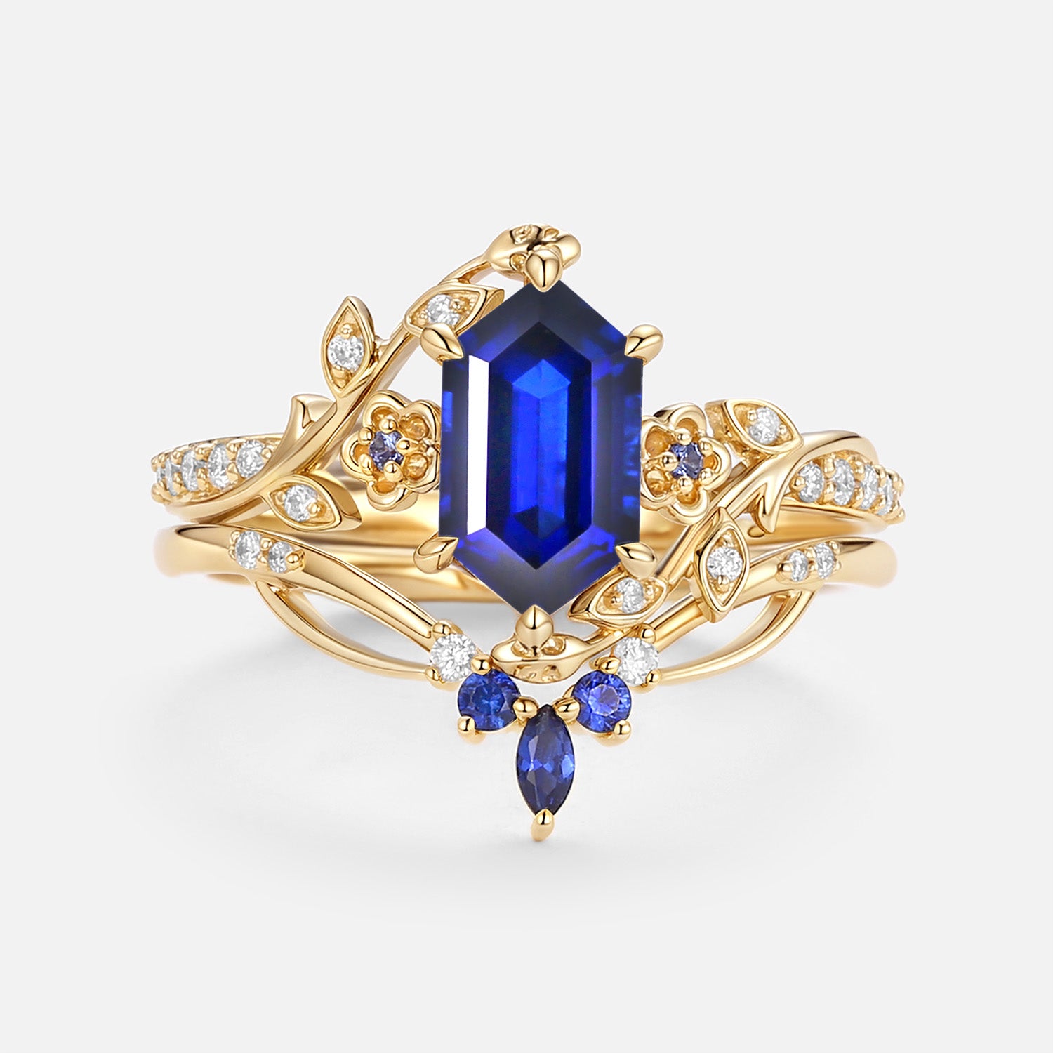 Lab Sapphire Elongated Hexagon Engagement Ring Set - Zane