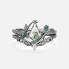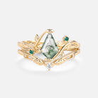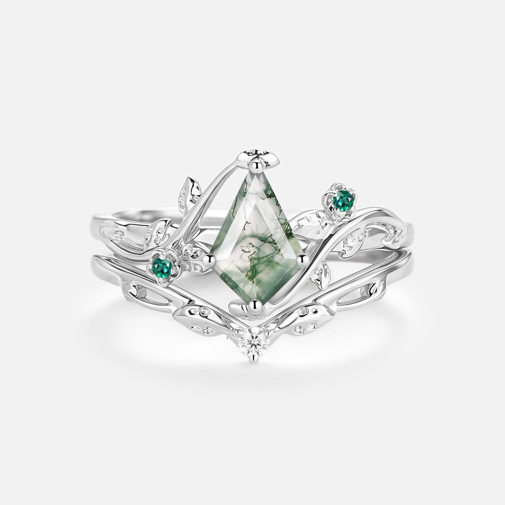 Leafy & Floral Kite Shaped Moss Agate Ring Sets 2pcs - Floret