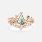 Felicegals Moss Agate Rings Kite Shaped Engagement Ring Kite Moss Agate Ring Vine Band Art Deco Chevron Band Marquise Leafy Infinity Ring Bridal Set 2pc Rose Gold Ring