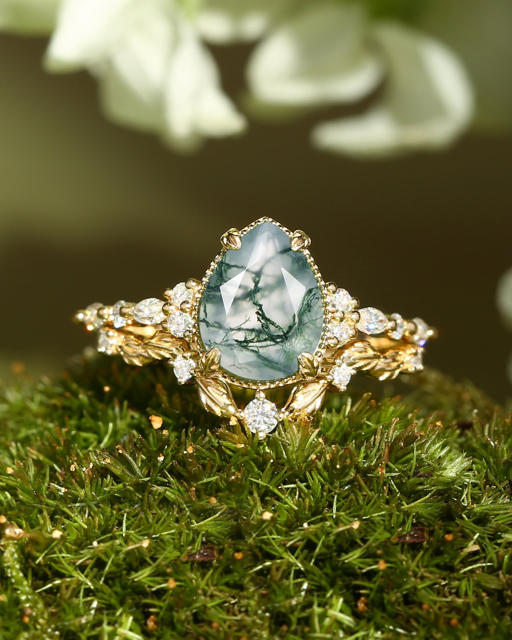 Long Hexagon Moss Agate Stacking Ring Set 2pcs