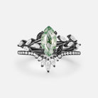 Marquise Cut Moss Agate Leafy Engagement Ring Sets 2pcs - Dart