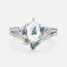 Moss Agate Elongated Hexagon Engagement Ring Set 2pcs - Azure